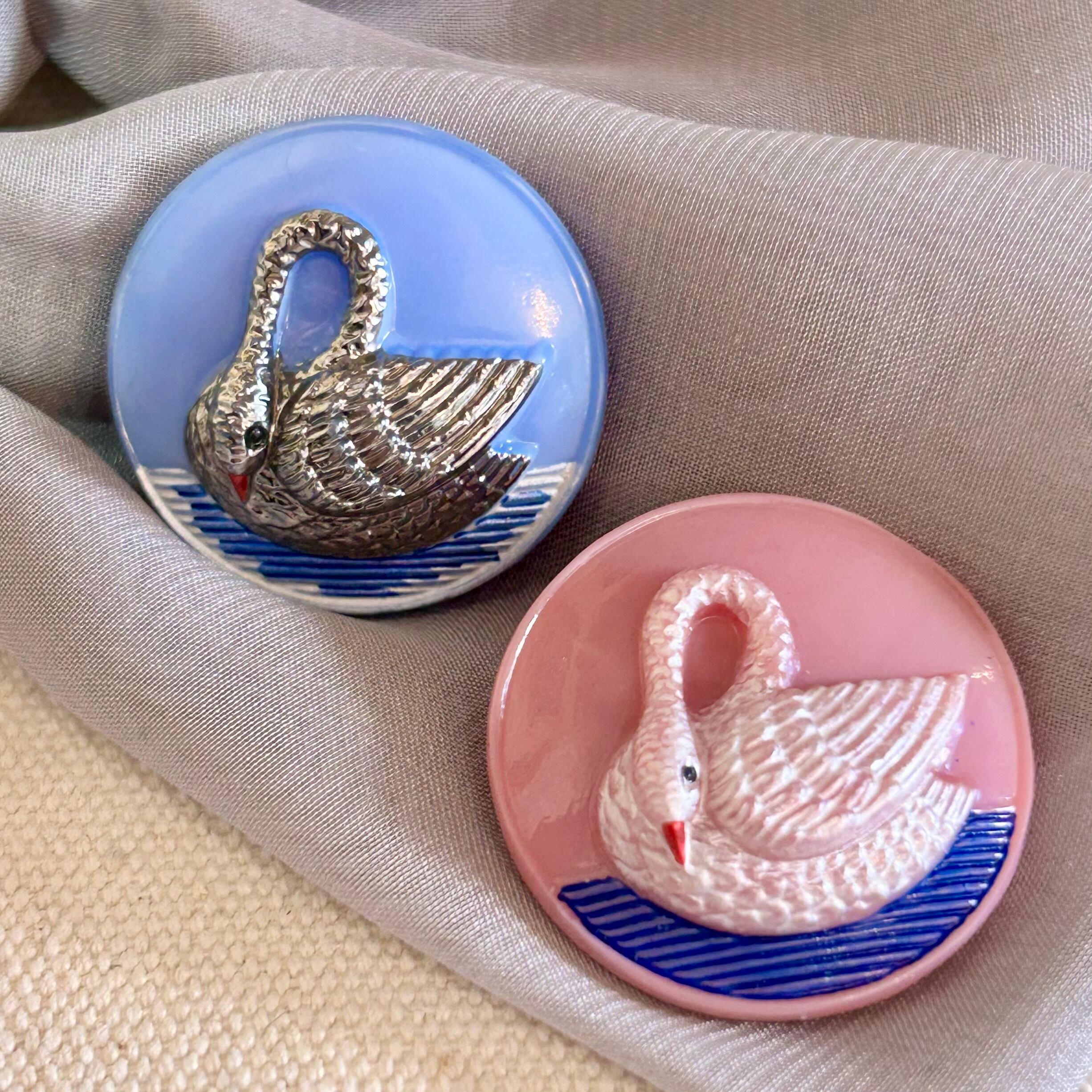 【チェコ ガラスボタン】スワン(ブルー シルバー)12号