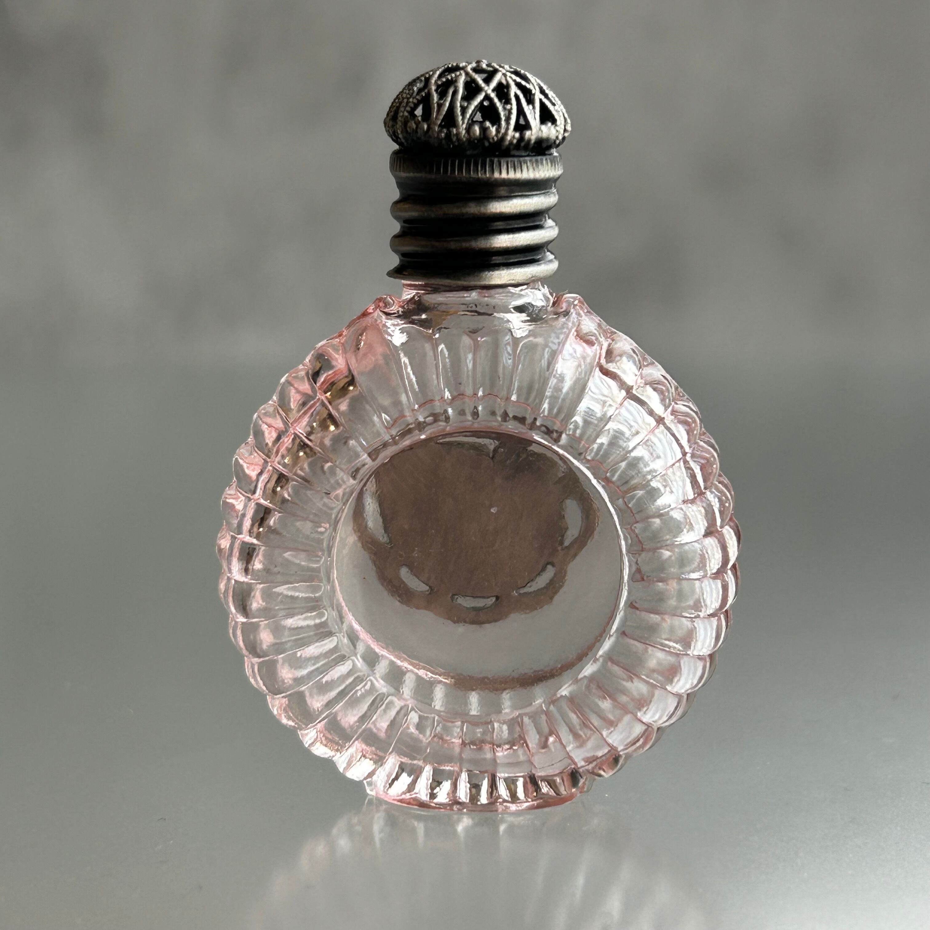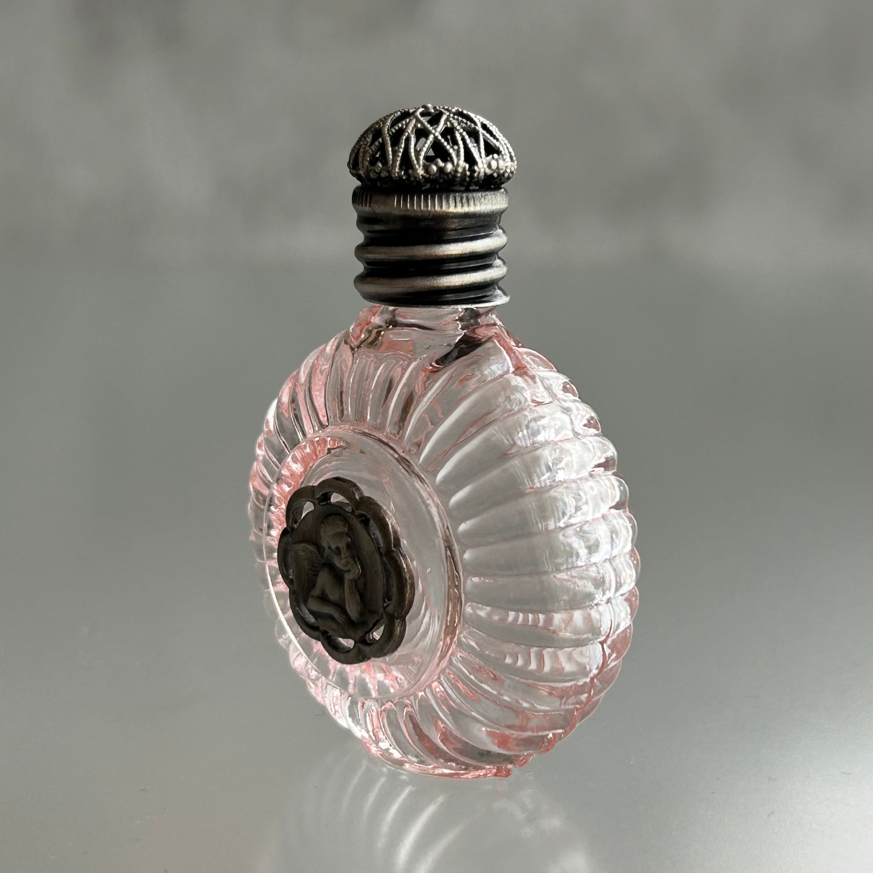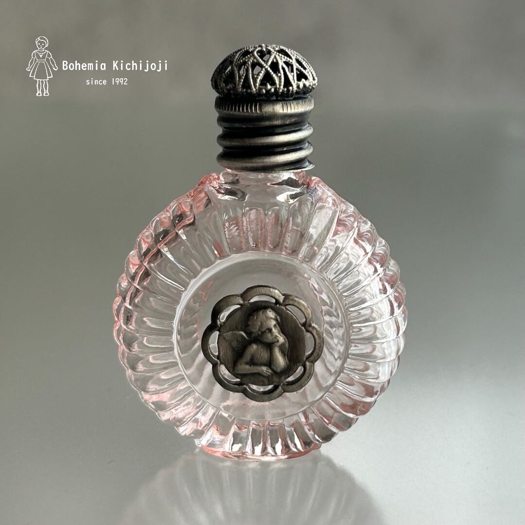 【チェコ製】ボヘミアガラスの香水瓶(丸型 ピンク エンジェル アンティークシルバー)
