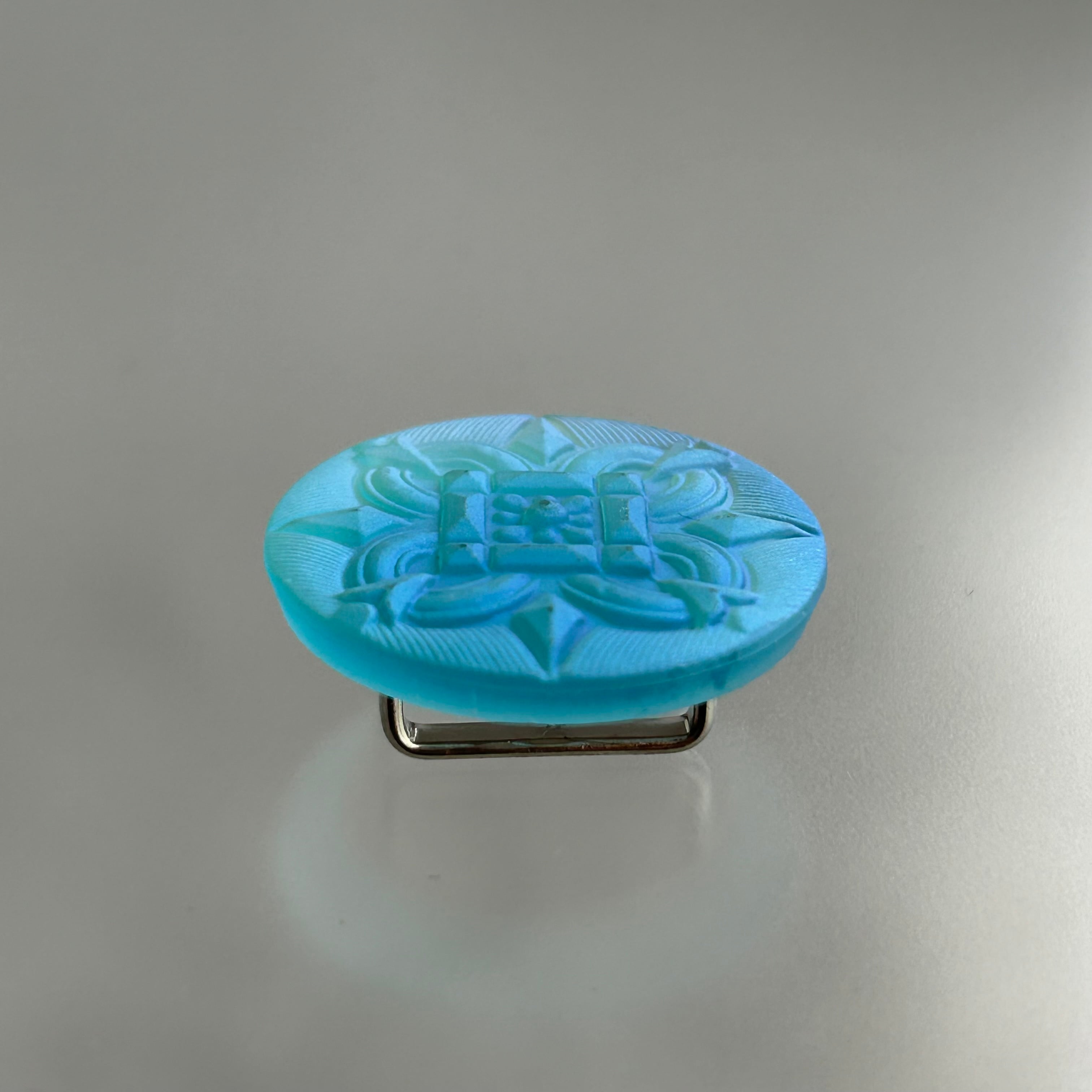 【チェコ ガラスボタン】帯留め(クレスト 玉虫色)