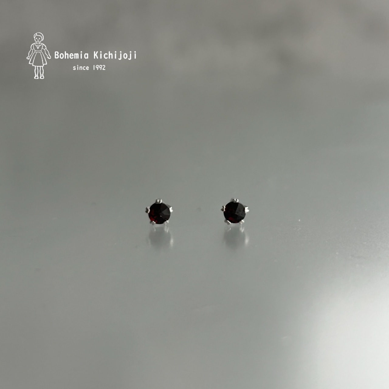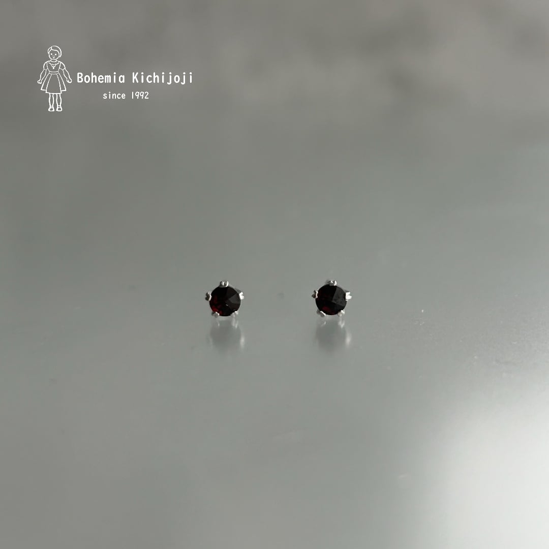 きれいなカットがほどこされた、一粒ガーネットのピアス。