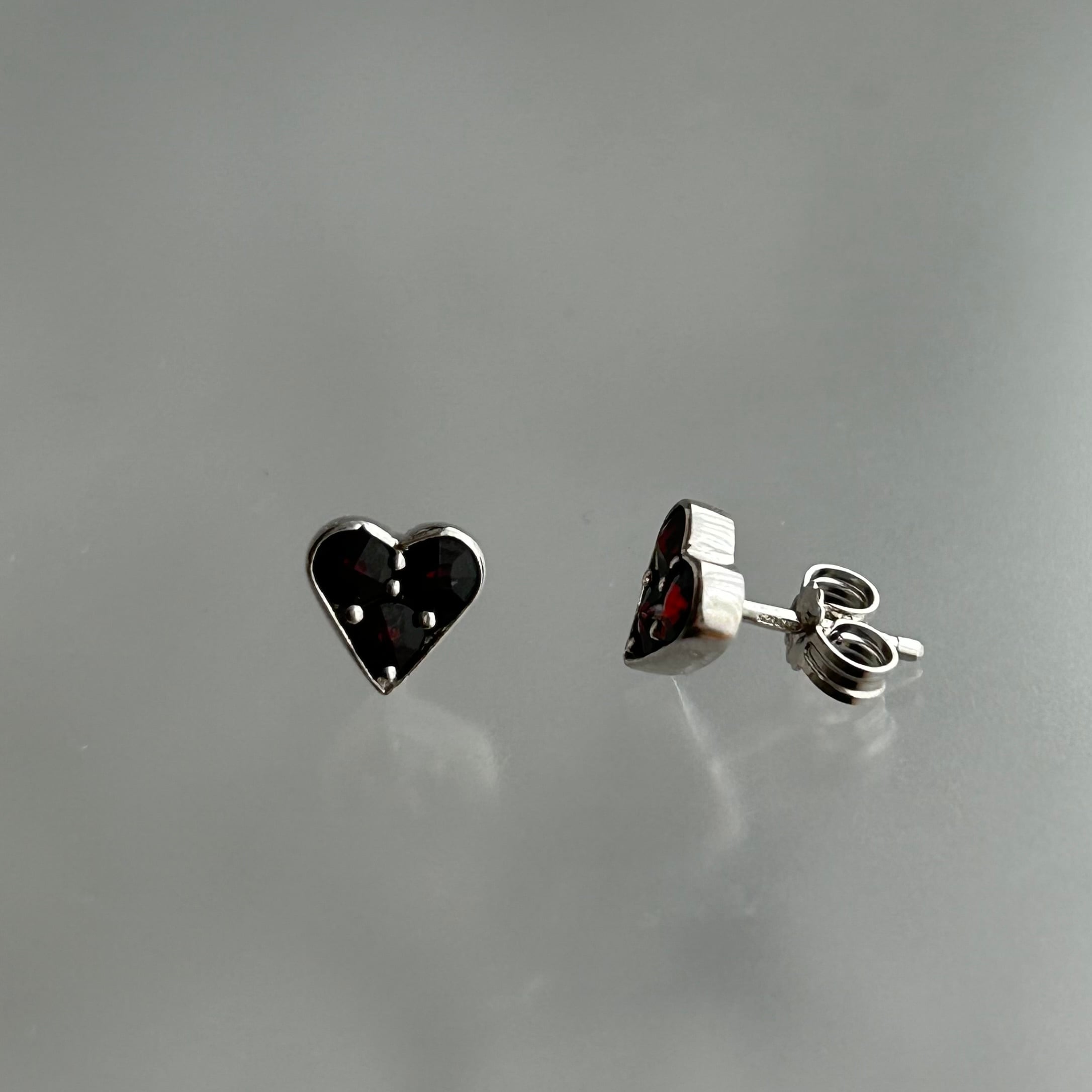 きれいなカットがほどこされた 可愛らしいハート型のガーネットピアス。