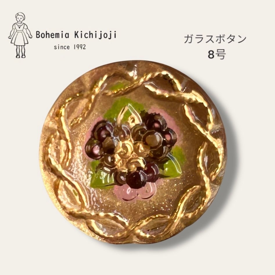 ガラスボタン(ロゼフルール ゴールド)1個