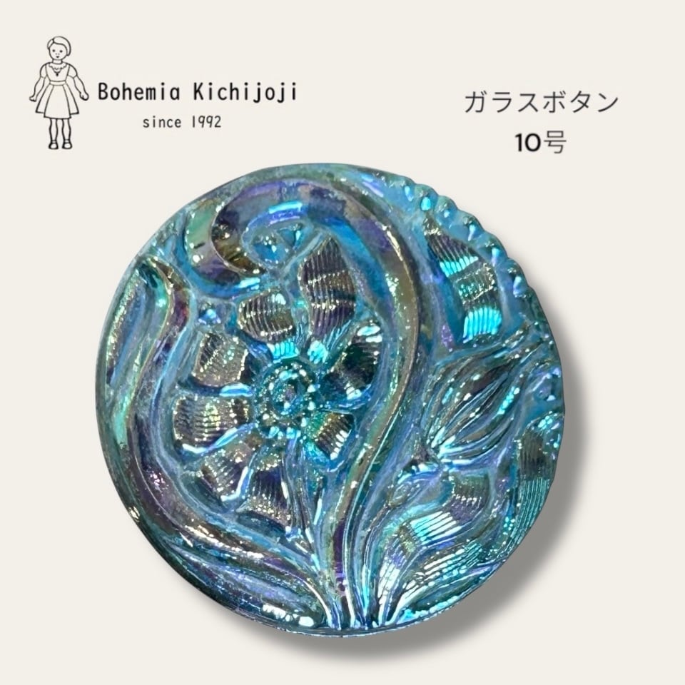 【チェコ ガラスボタン】クラリス(オーロラ ブルー)10号