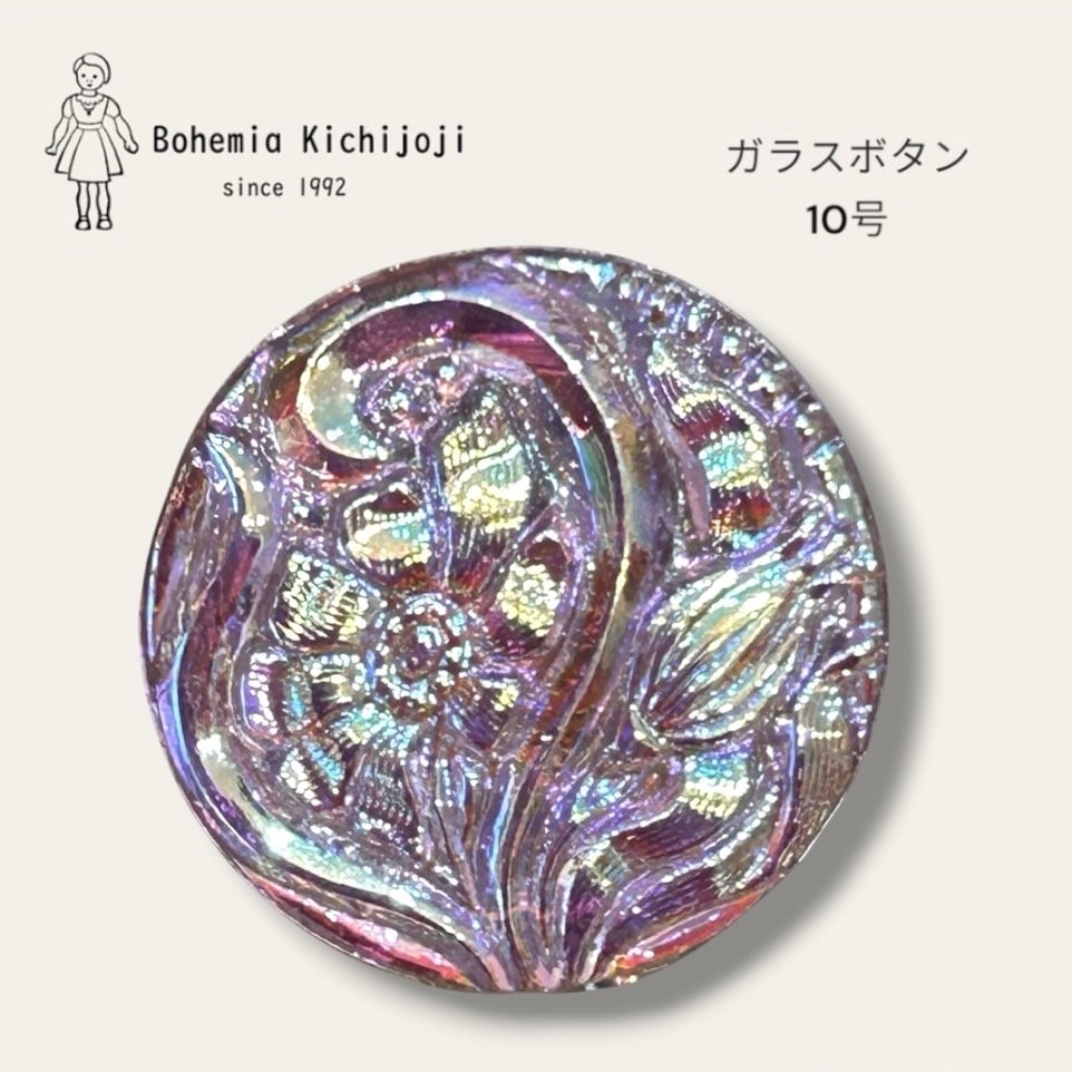 【チェコ ガラスボタン】クラリス(オーロラ ライトパープル)10号
