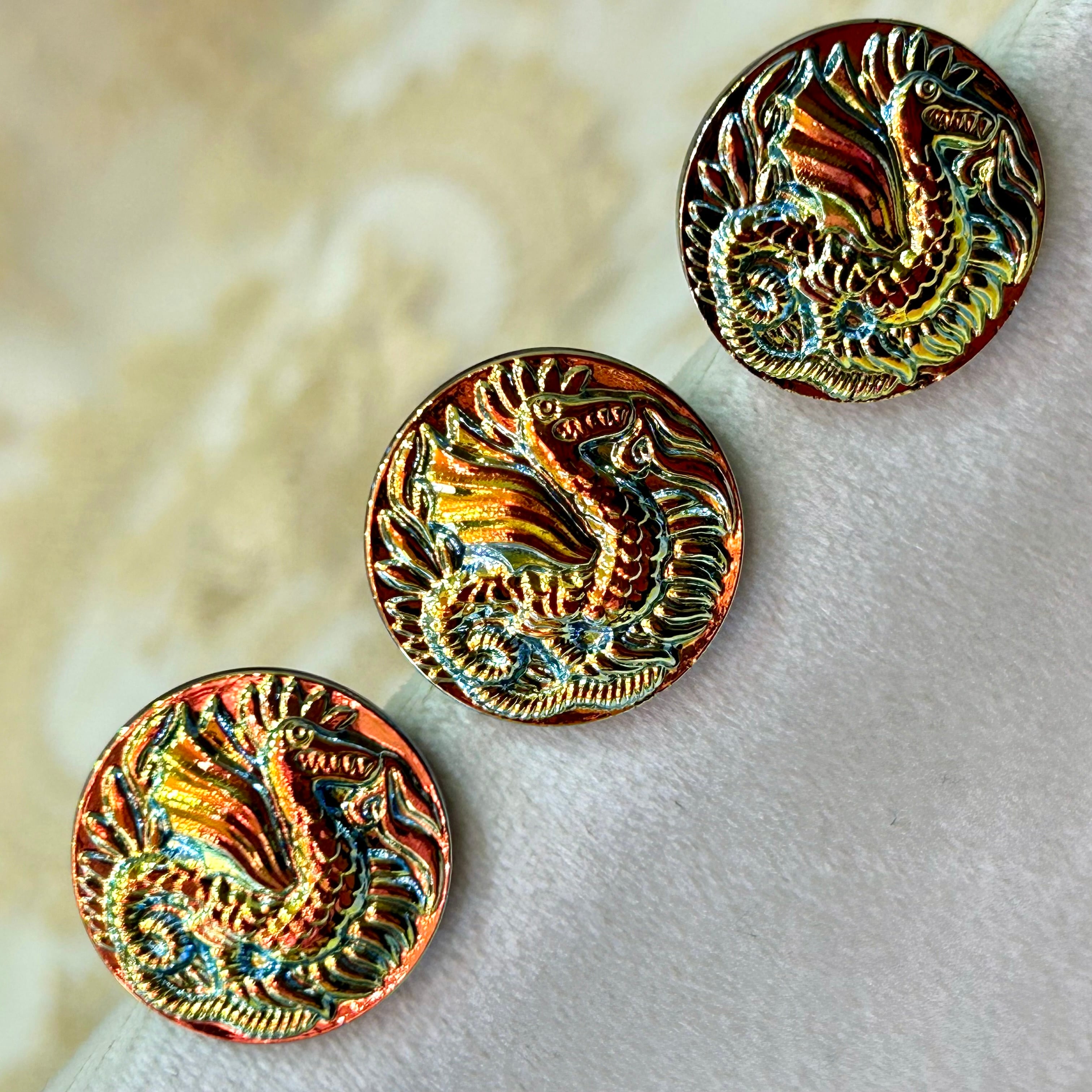 【チェコ ガラスボタン】ドラゴン(メタリック)10号