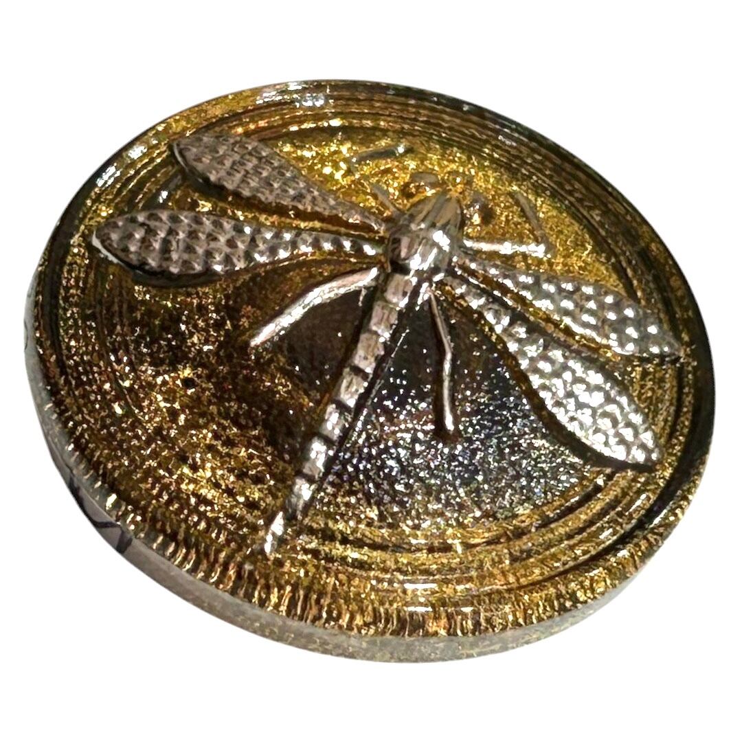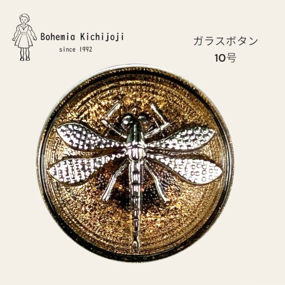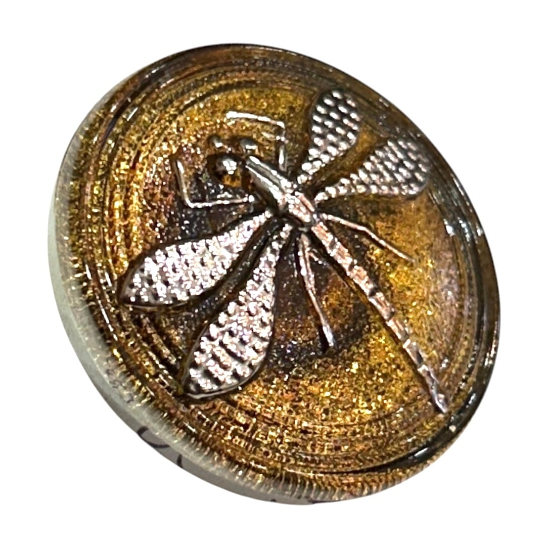 【チェコ ガラスボタン】トンボ(ブラウン シルバー)10号