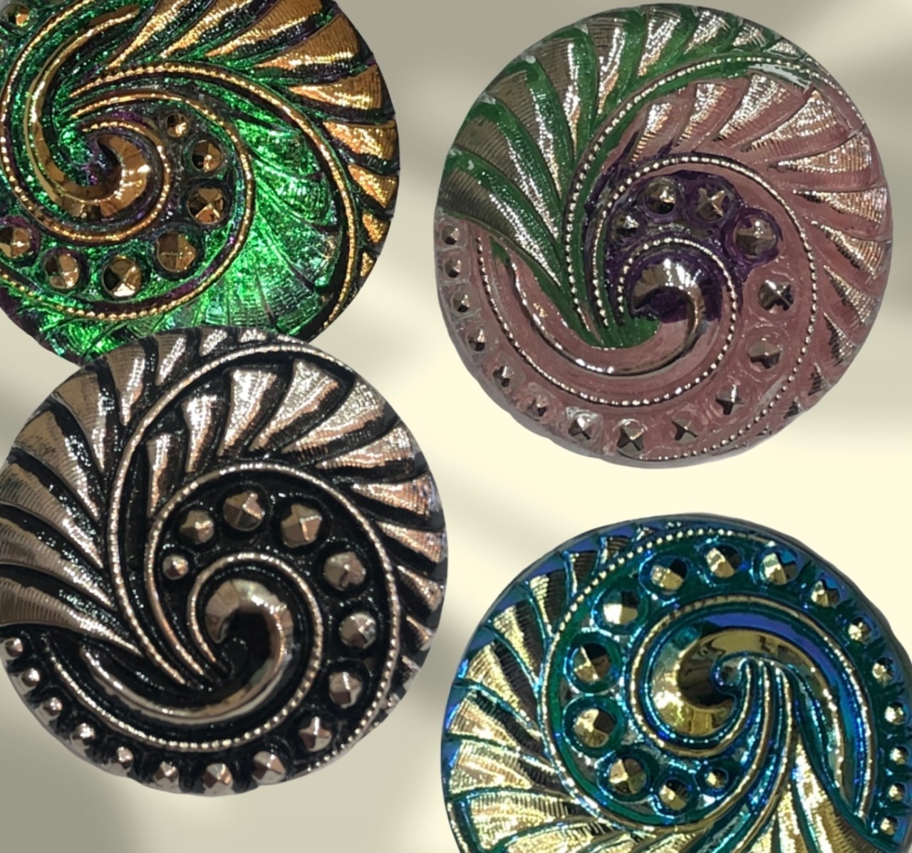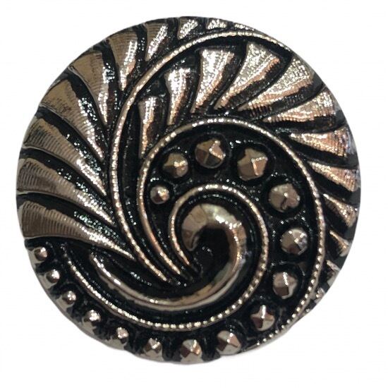【チェコ ガラスボタン】セセッションスパイラル(ブラック シルバー)12号