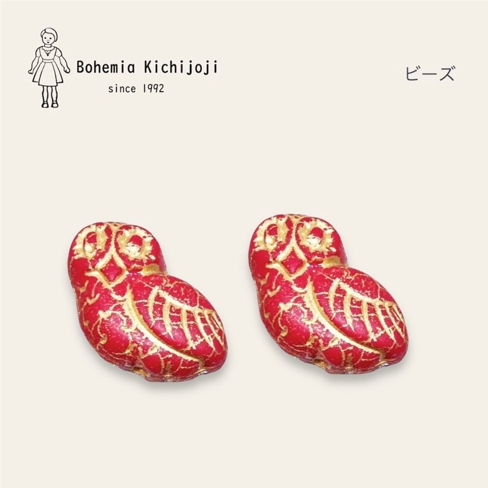 【チェコ ガラスビーズ】(フクロウ)2個入り