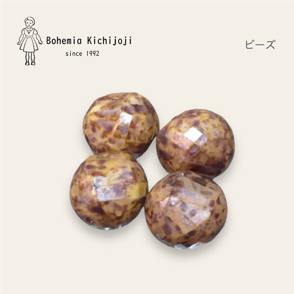 【チェコ ガラスビーズ】(ブラウンのポリッシュ)4個入り