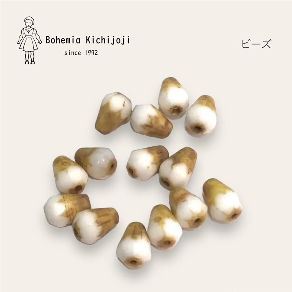 【チェコ ガラスビーズ】(ホワイトカットドロップ)14個入り