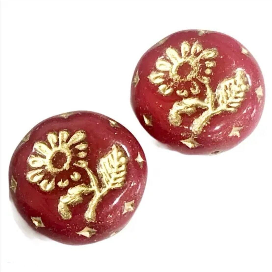【チェコ ガラスビーズ】コインフラワー(レッド)2個入り