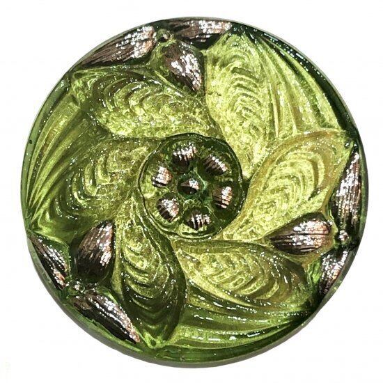 【チェコ ガラスボタン】ウィンドミール(グリーン シルバー)12号