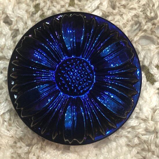 【チェコ ガラスボタン】デイジー(メタリックブルー)12号