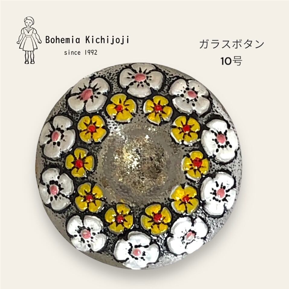 【チェコ ガラスボタン】フラワーガーデン(ホワイト イエロー)10号