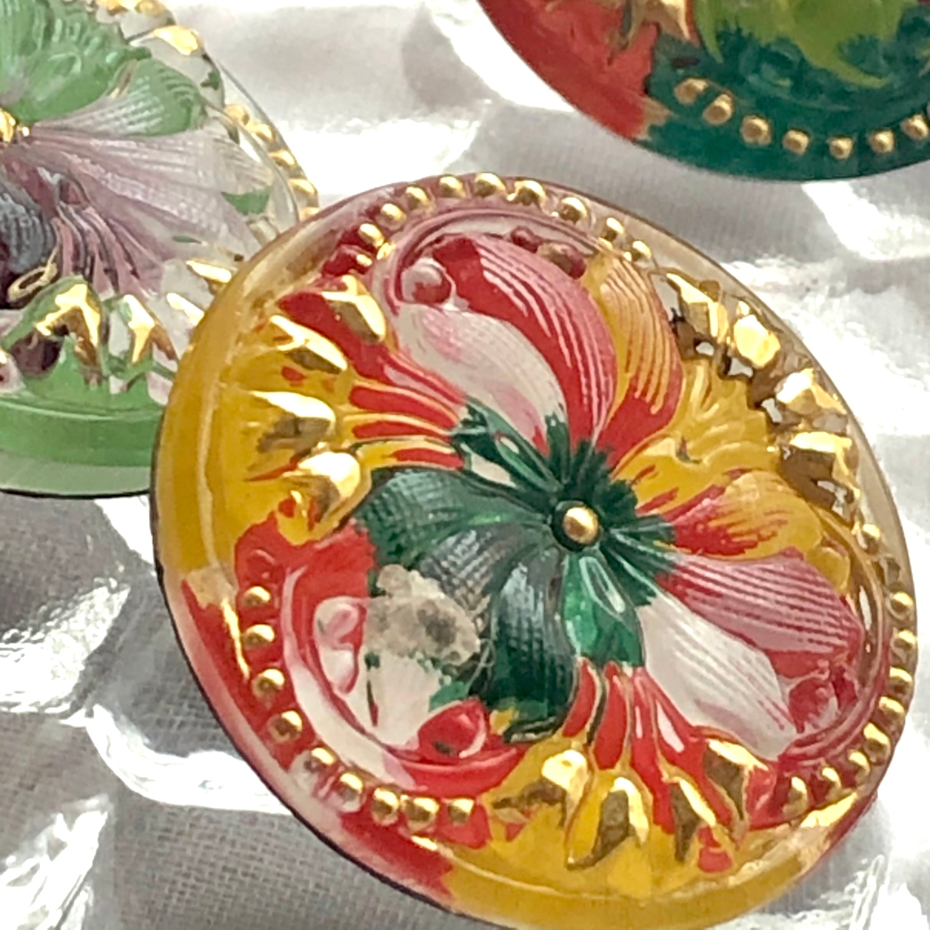 【チェコ ガラスボタン】パンジー(レッド イエロー)10号