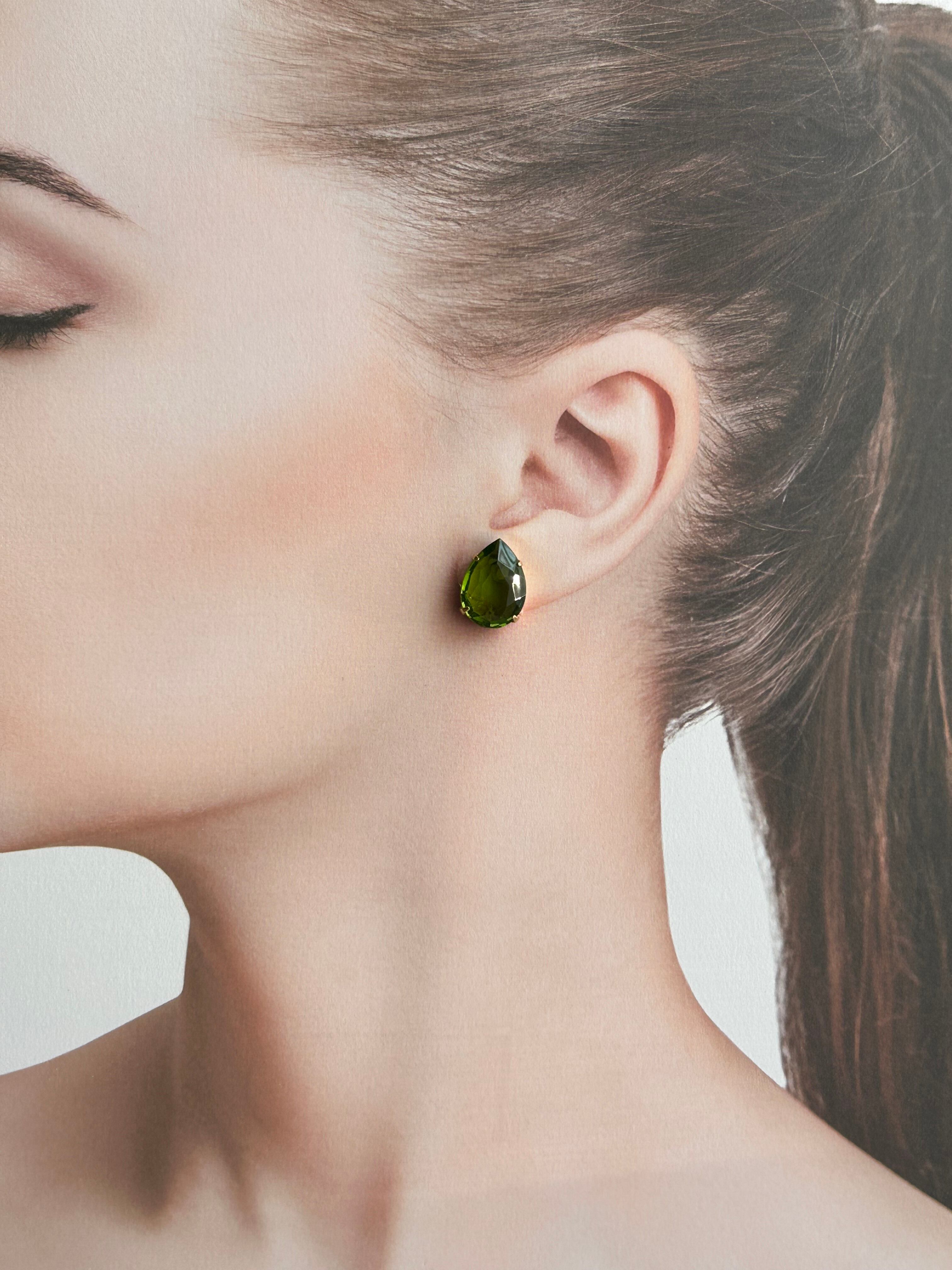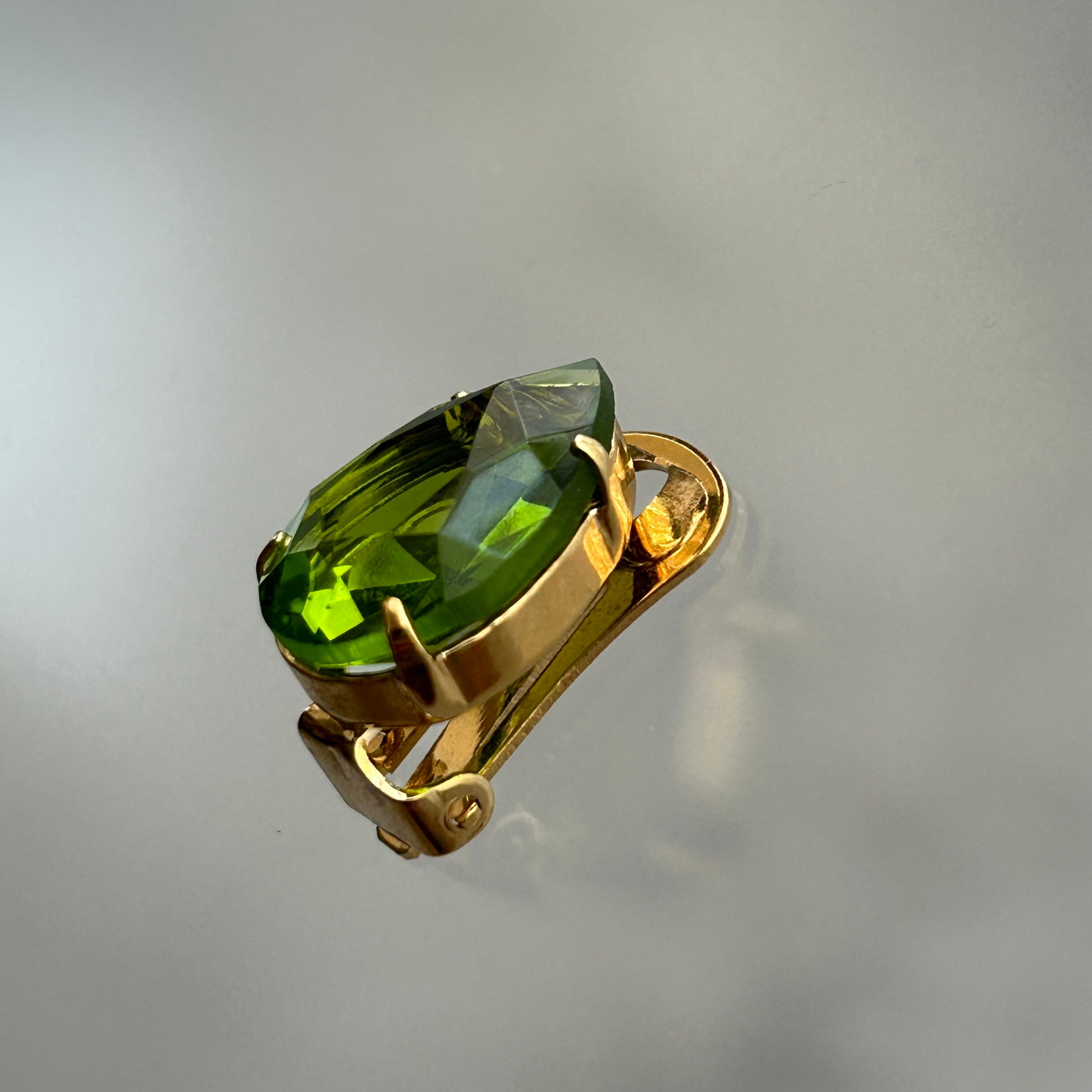 チェコのラインストーンイヤリング。ペリドットグリーン。