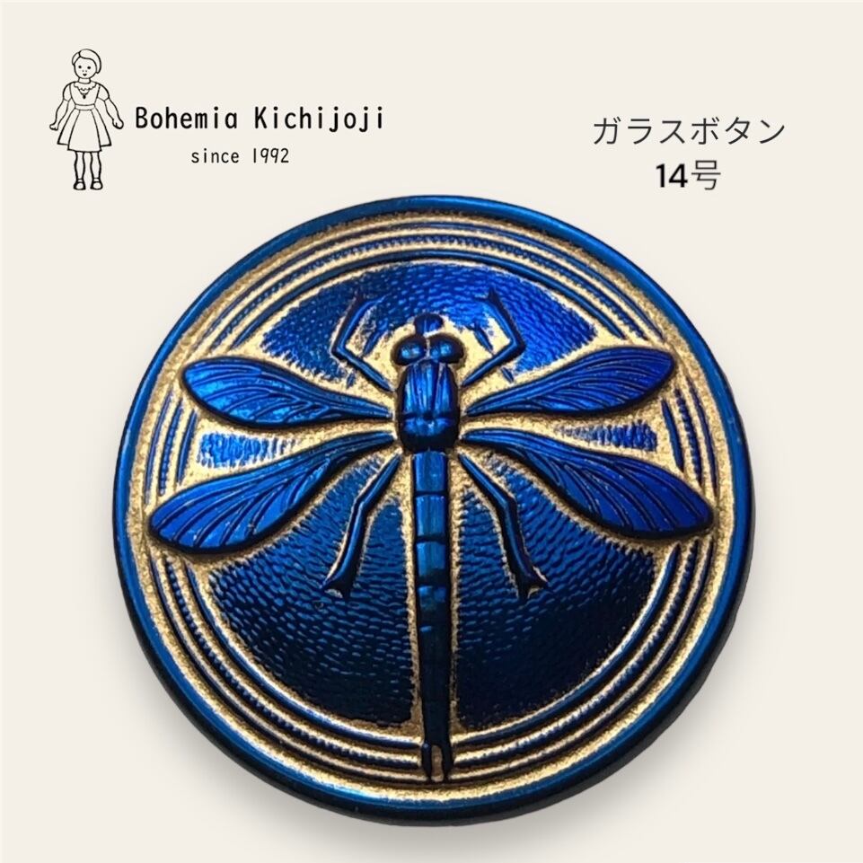 【チェコ ガラスボタン】トンボ(コバルトブルー ゴールド)14号