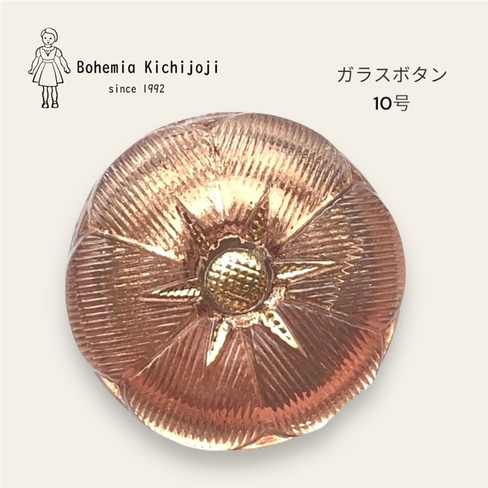 【チェコ ガラスボタン】モーニンググローリー(ライトブラウン ゴールド)10号