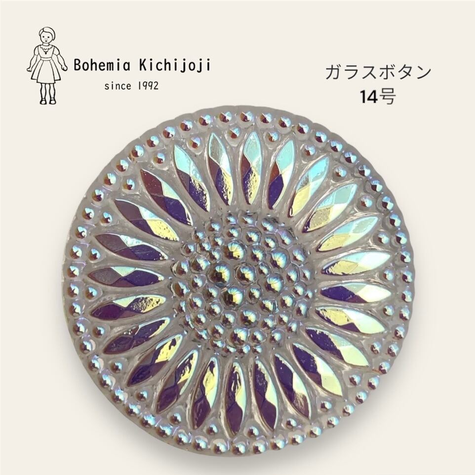 【チェコ ガラスボタン】ひまわり(オーロラ クリア)14号