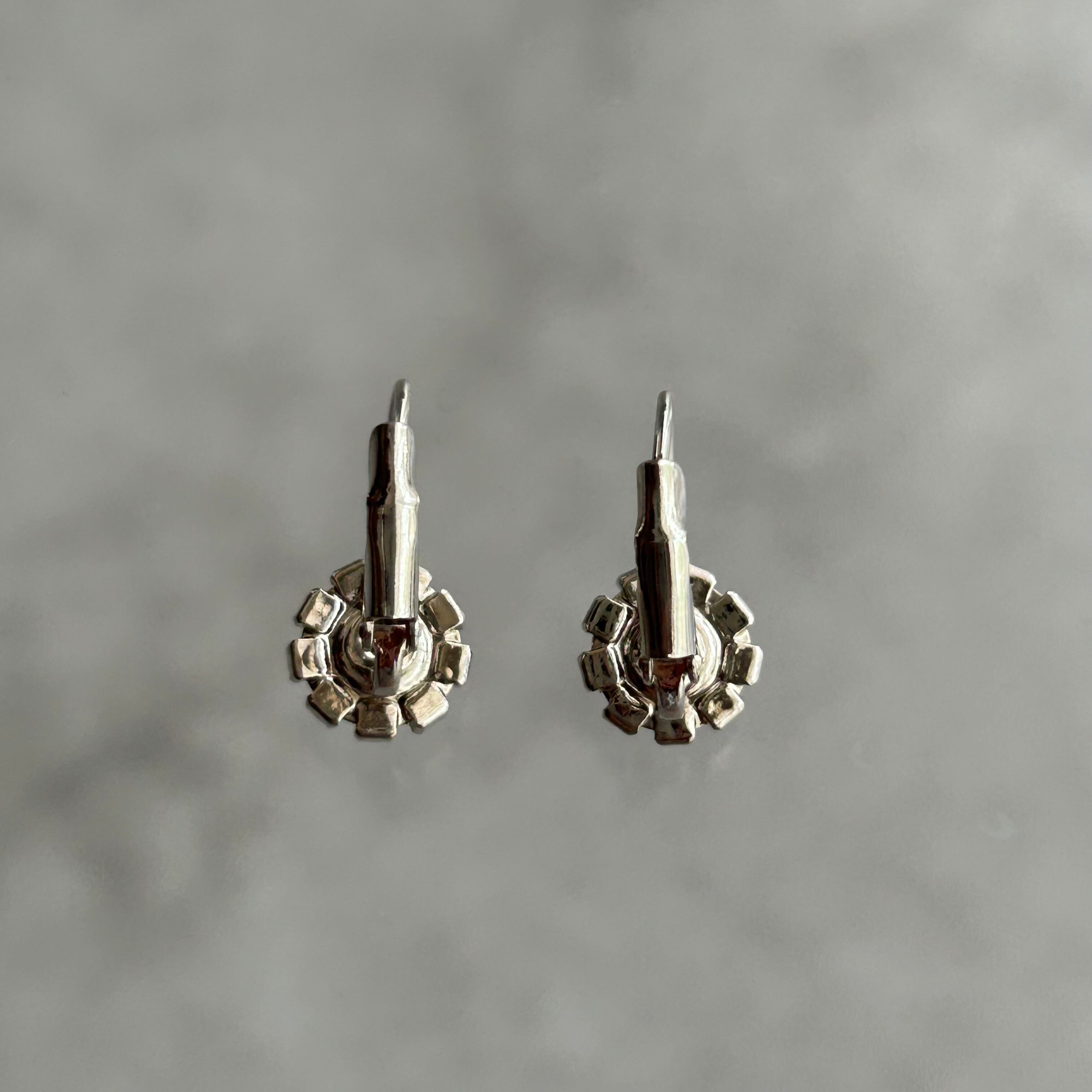 スワロフスキーのガラスパーツを使った可愛らしいピアスです。繊細なカットが施されているため、耳元で美しく光ります。金具はロジウムコーティングがされています。