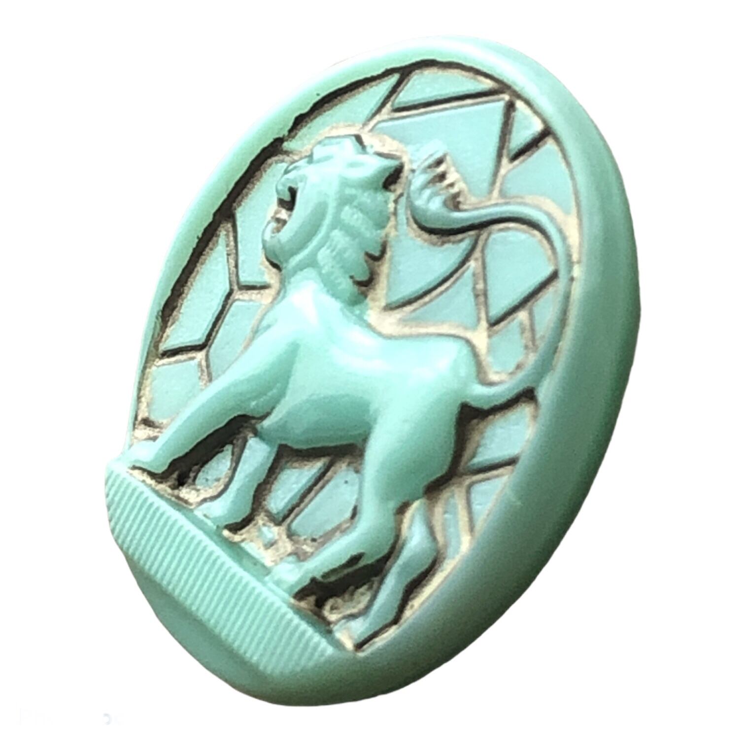 【チェコ ガラスボタン】ライオン(ターコイズ ゴールド)12号