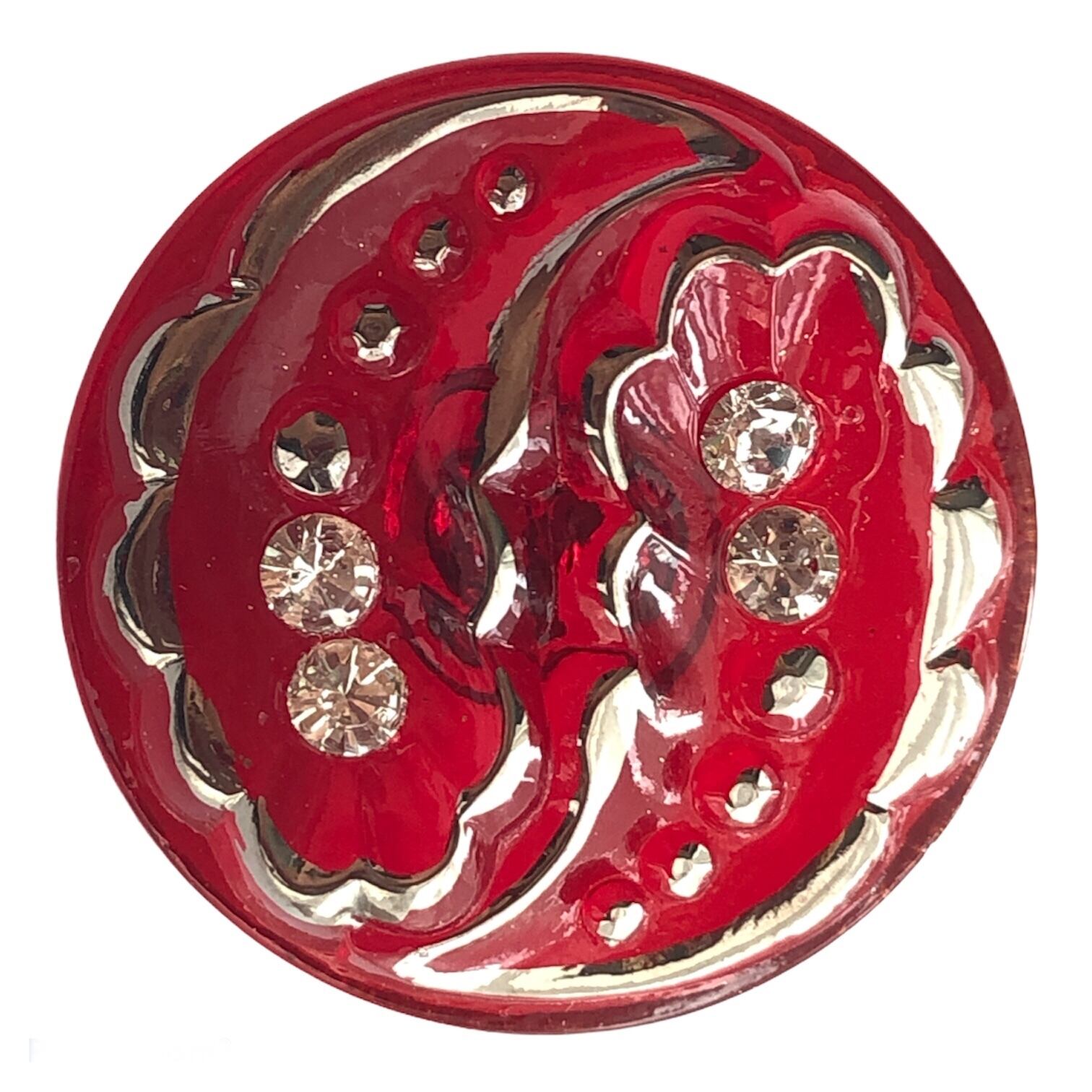 ガラスボタン(ブリリアンス レッド シルバー クリア) 1個
