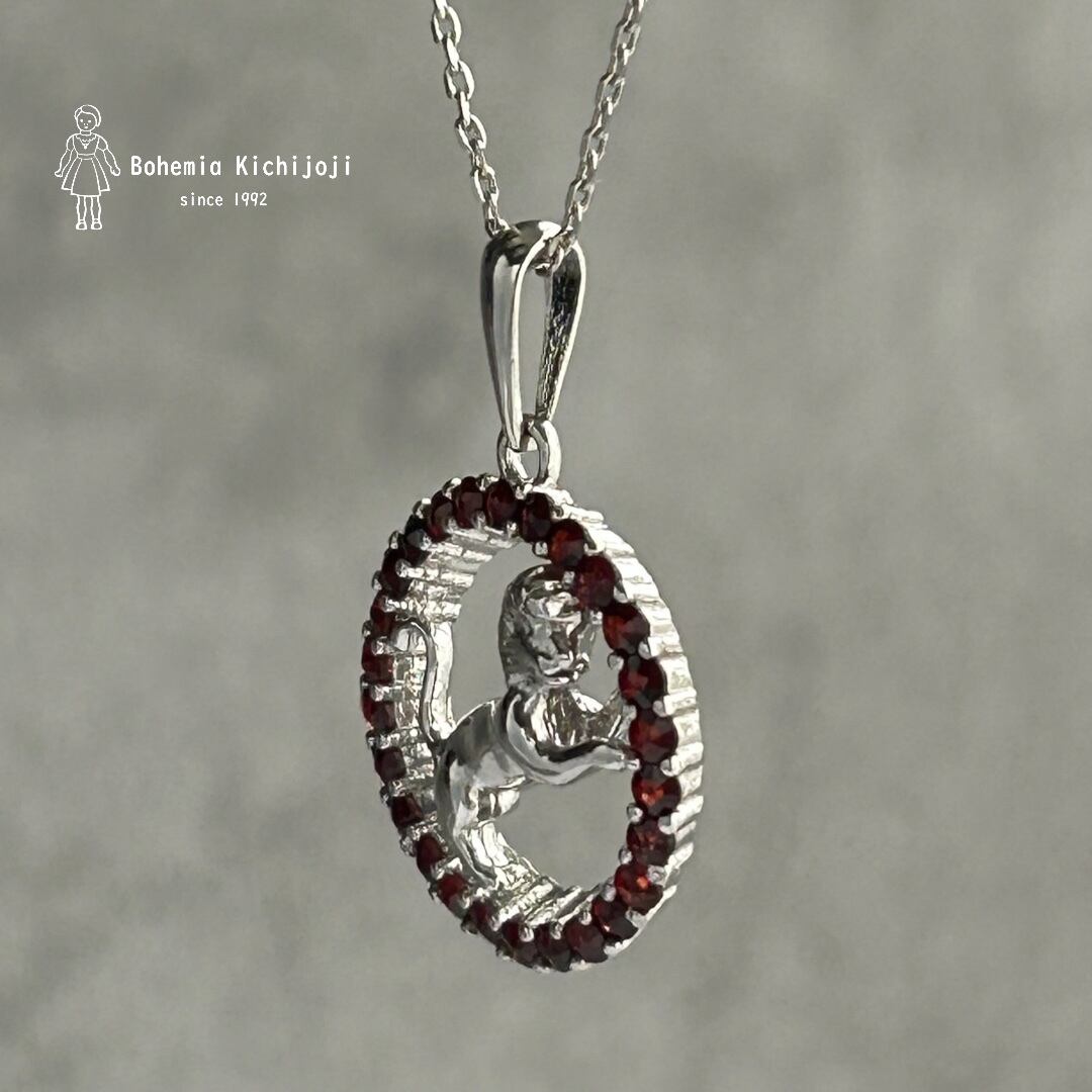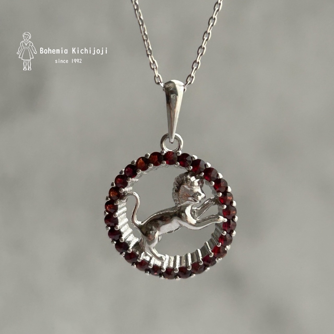 獅子座(7月23日~8月22日)のペンダントトップ。丁寧に作られた獅子のモチーフがガーネットに縁取られているデザイン。