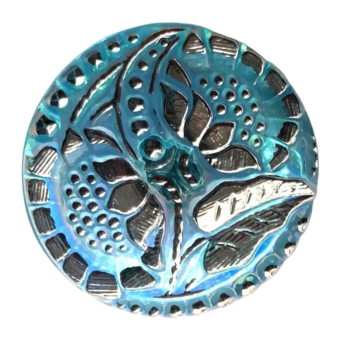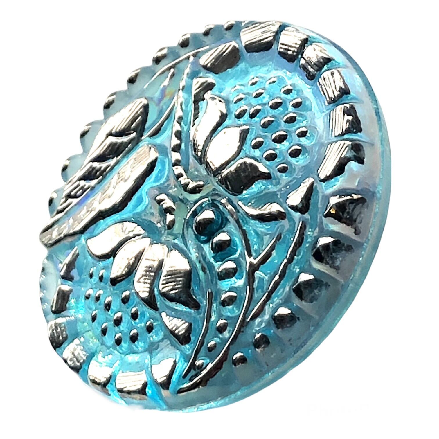 ガラスボタン(ツインフラワー クリアライトブルー シルバー ) 1個