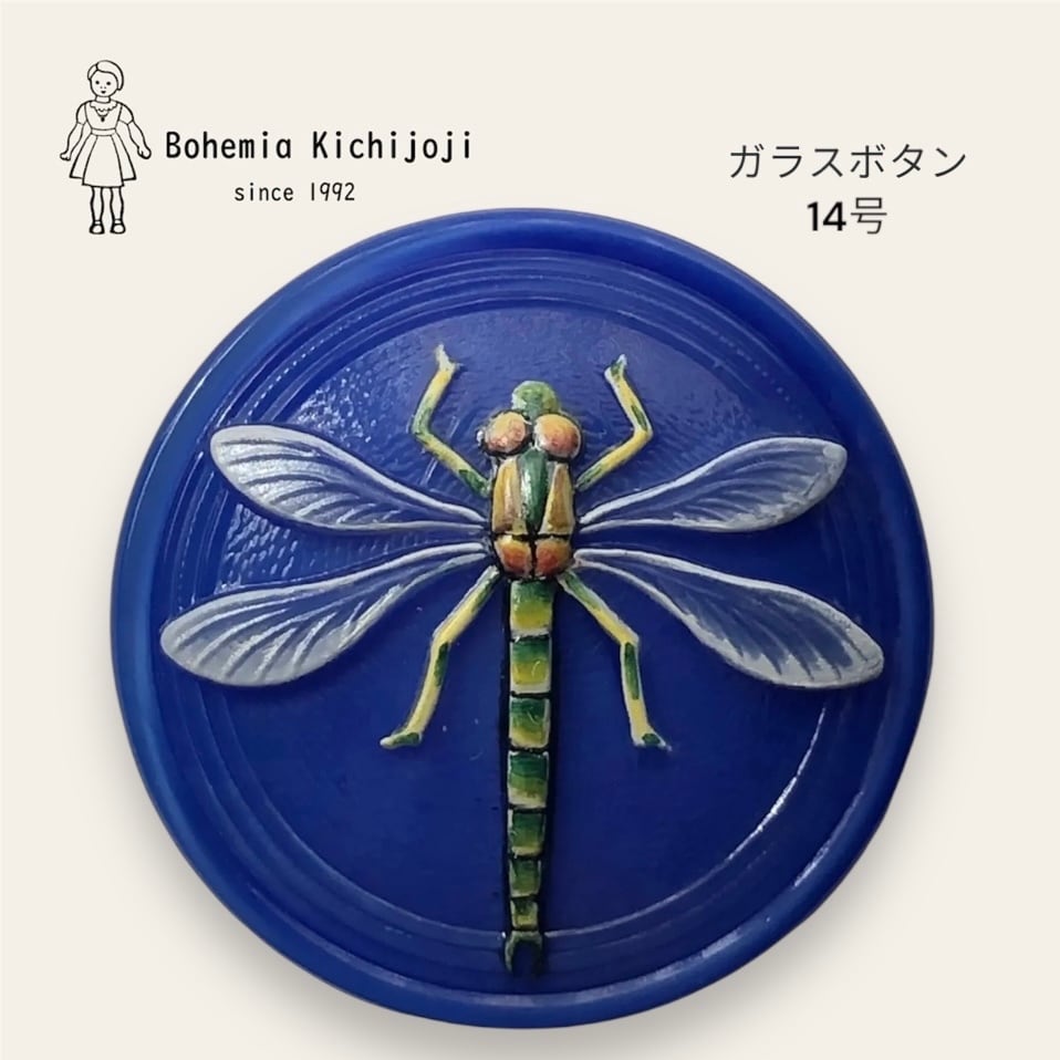 【チェコ ガラスボタン】トンボ(ブルー イエローグリーン)14号