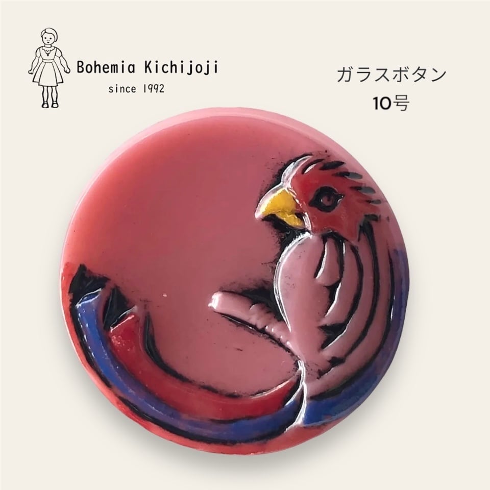 【チェコ ガラスボタン】オウムS(レッドブルー ピンク)10号