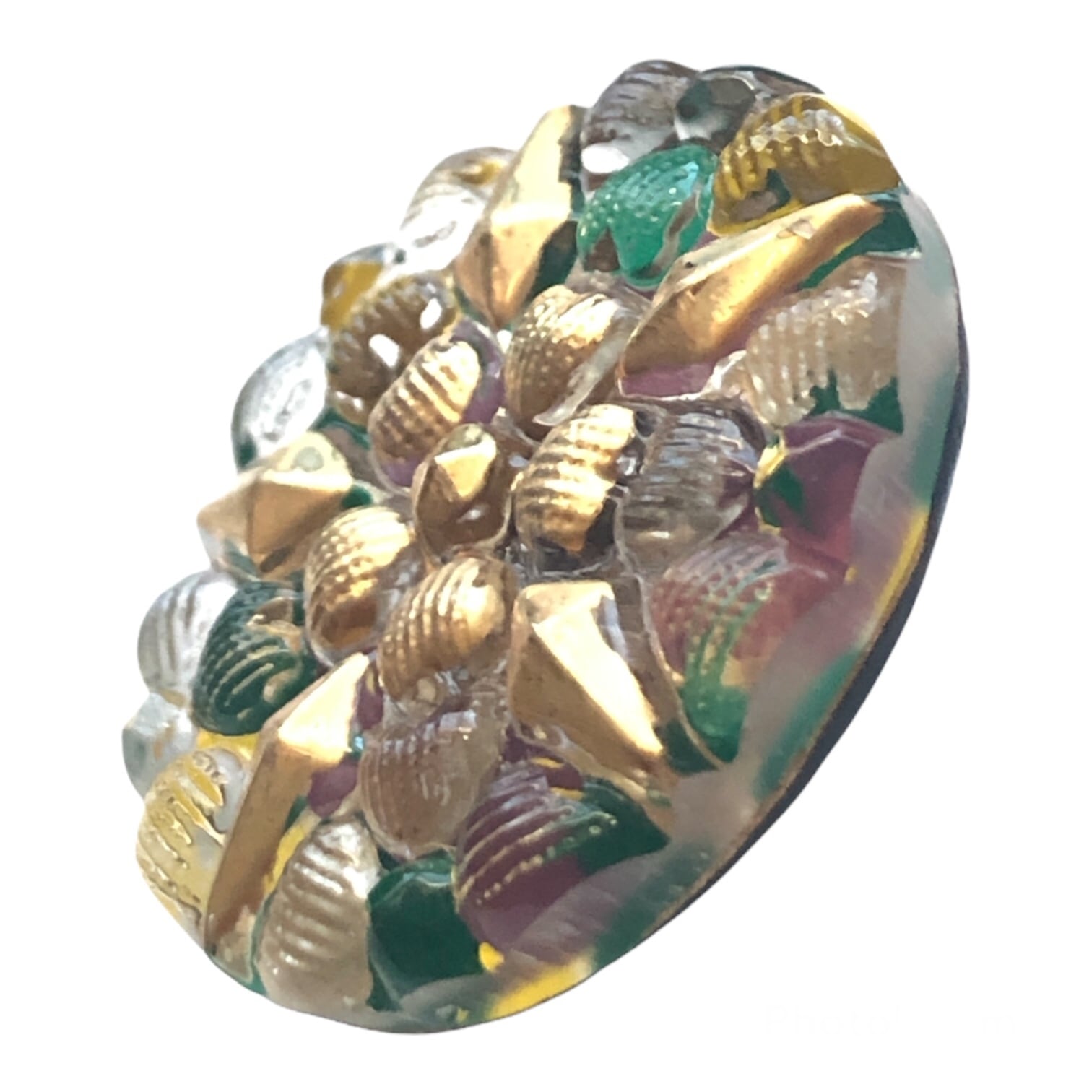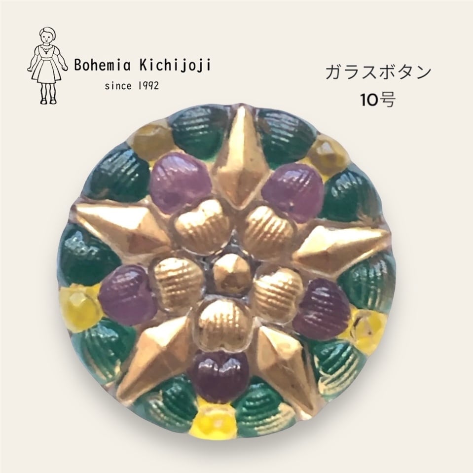 【チェコ ガラスボタン】スターフラワー(ゴールド イエロー グリーン パープル)10号