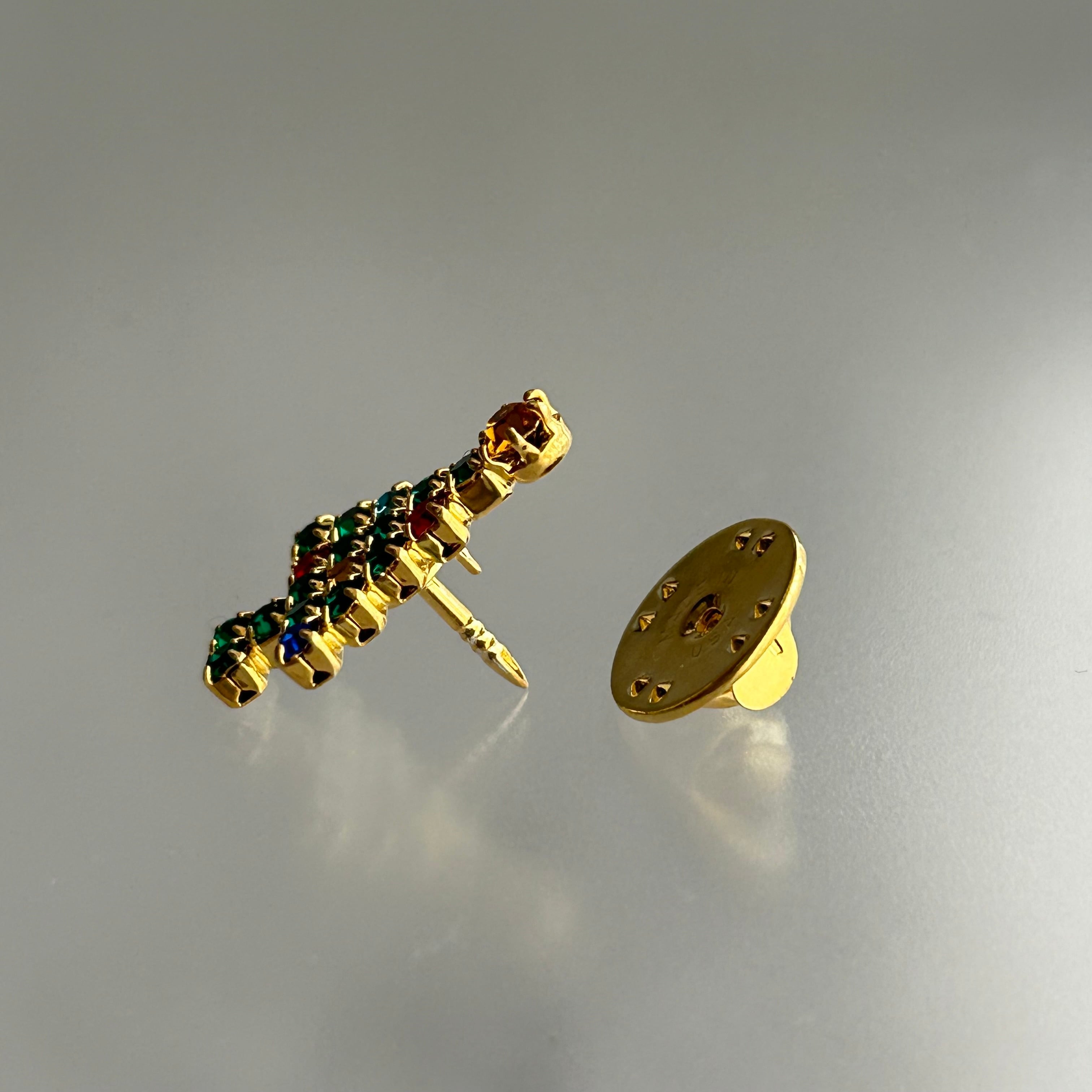 クリスマスの可愛らしいピンブローチ。小さなラインストーンがキラキラ光っています。