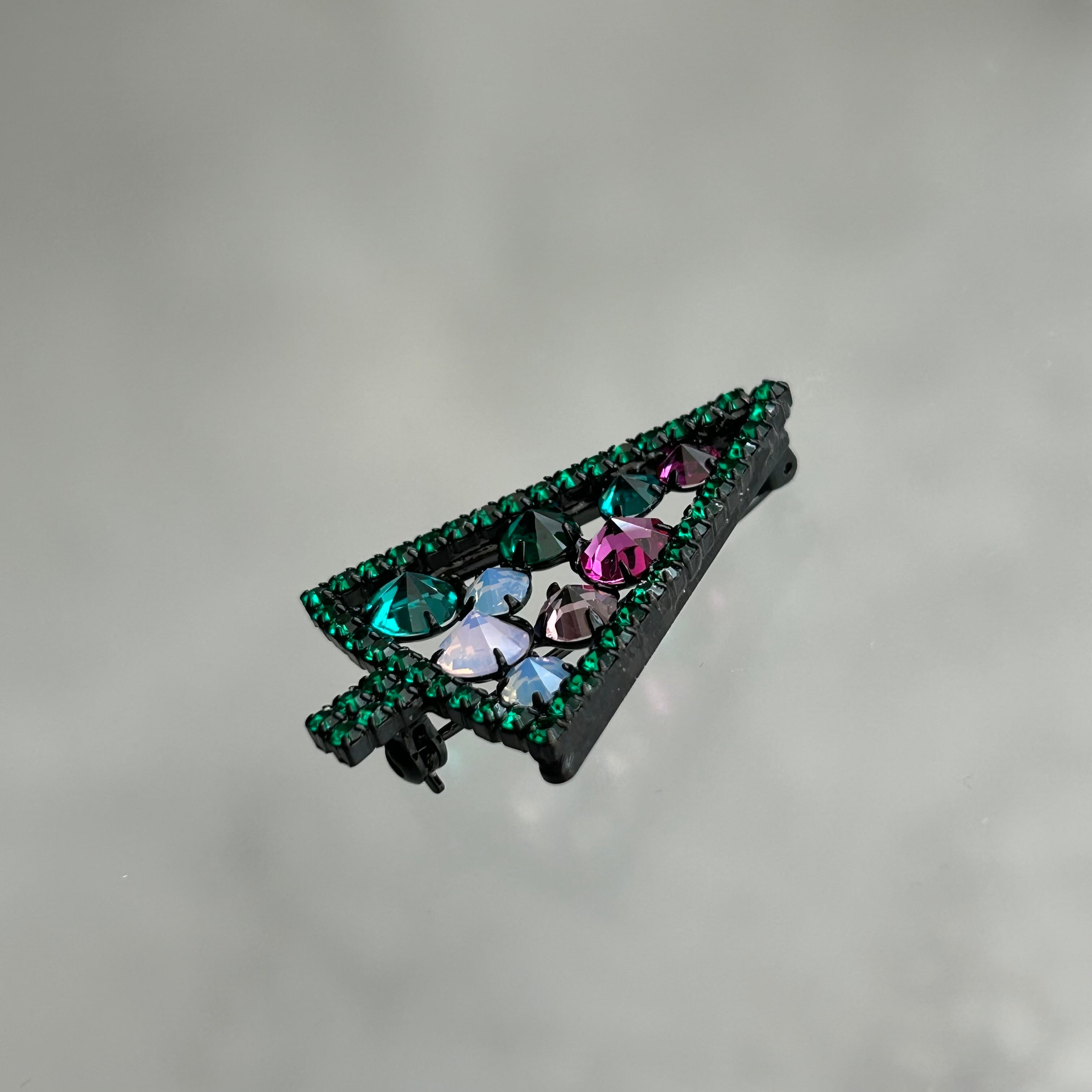 チェコのアクセサリー工房に、当店のオリジナルカラーで製作してもらったX'masブローチです。上質なラインストーンが華やかに胸元できれいに輝き、ブラックカラーの金具が大人の落ち着いた雰囲気も醸しだしています。