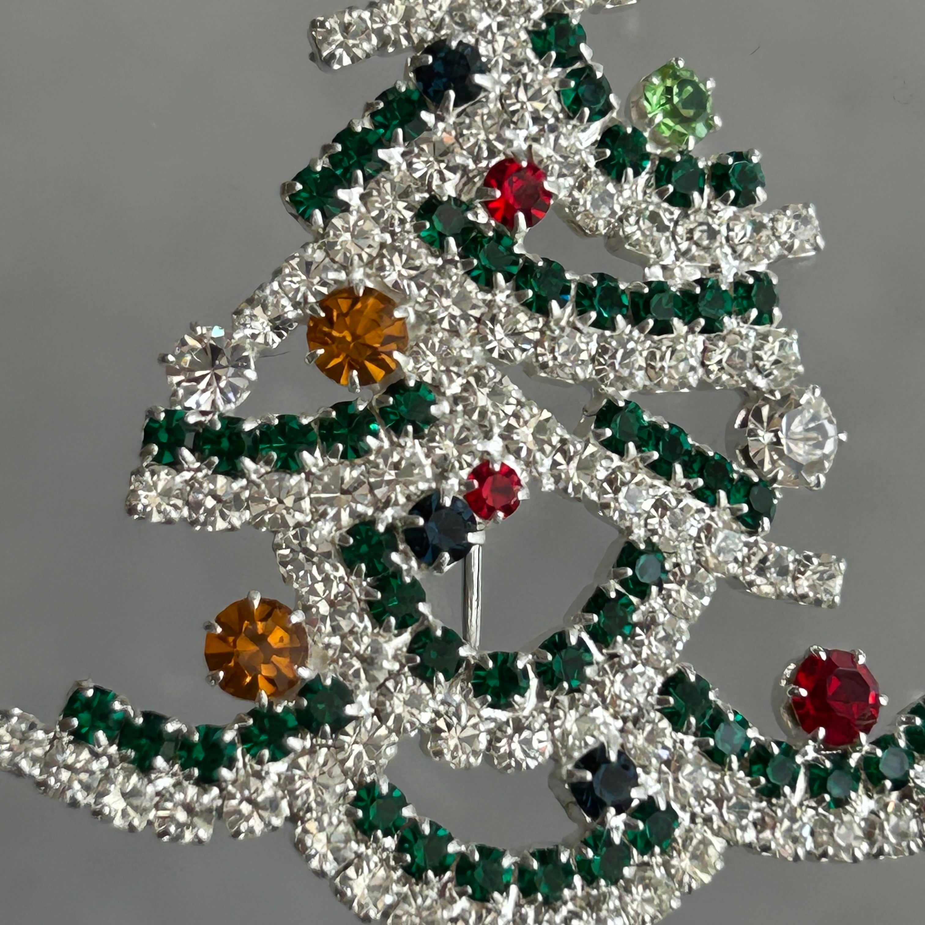 チェコのアクセサリー工房製作のXmasブローチ。クリアカラーのラインストーンがアクセントになり、胸元を華やかに彩ってくれます。