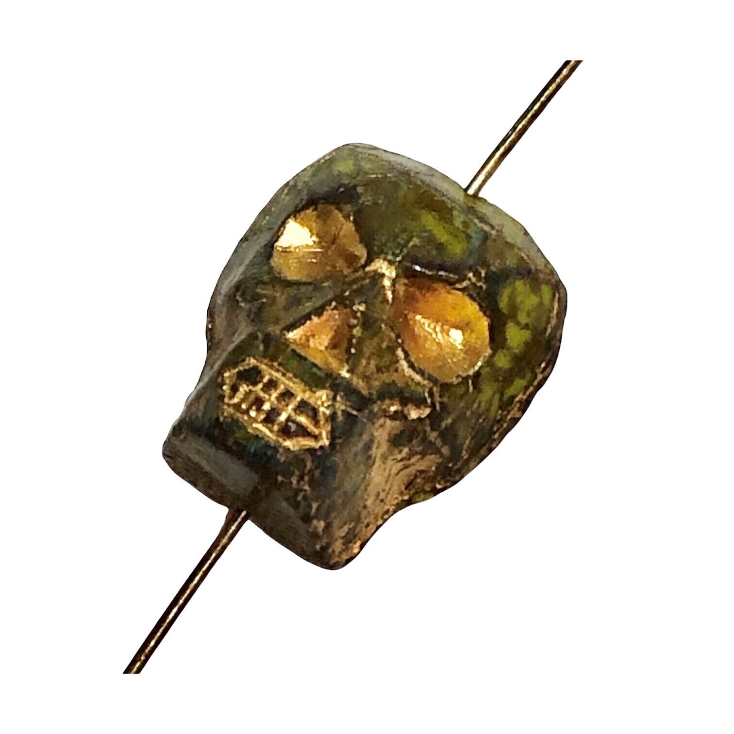 【チェコ ガラスビーズ】スカル(ライム ゴールド)1個入り