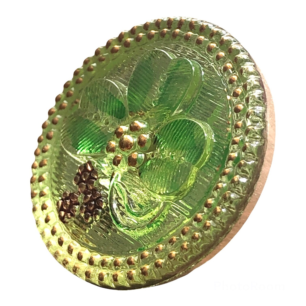 透明感溢れるチェコガラスボタンです。大人気のクローバー柄。