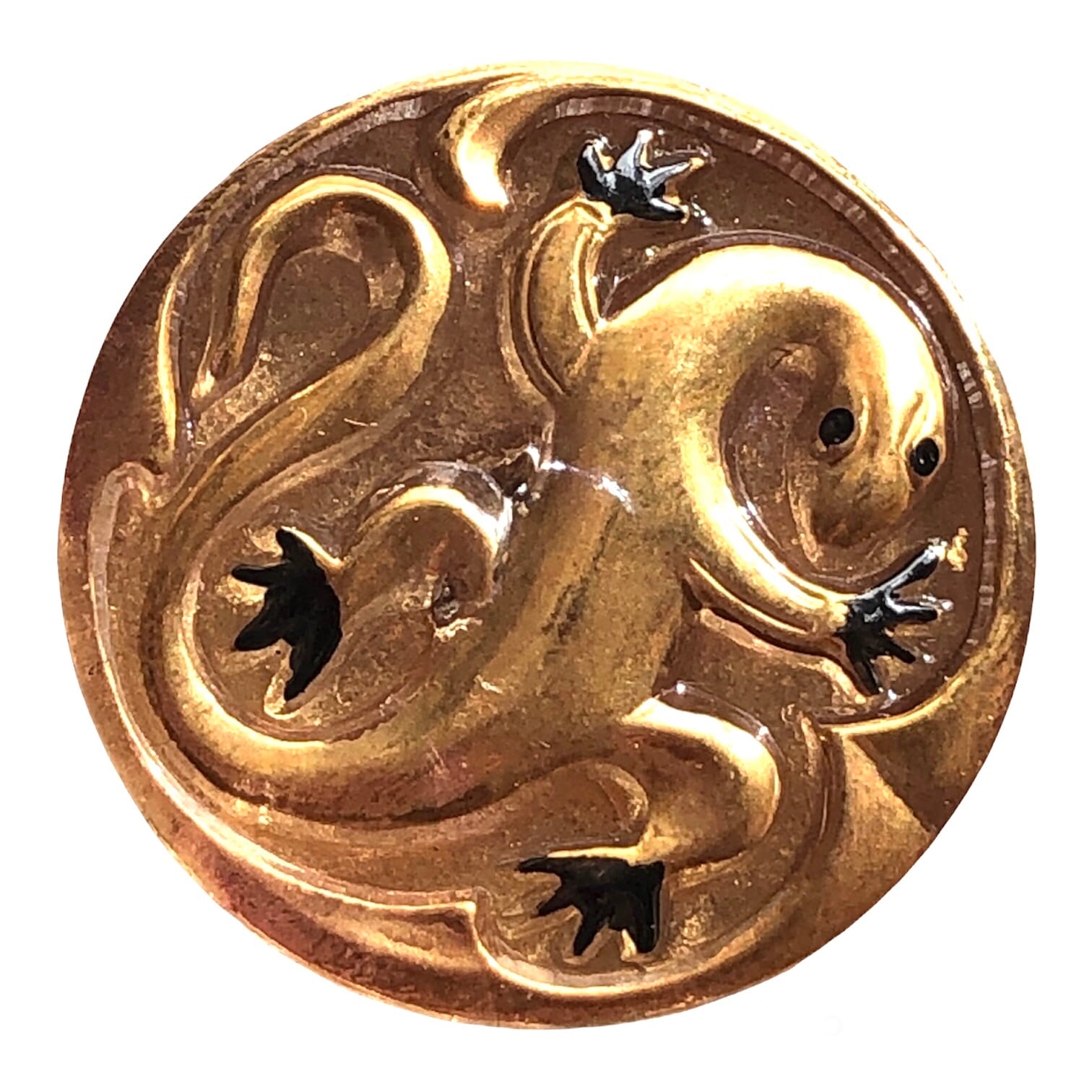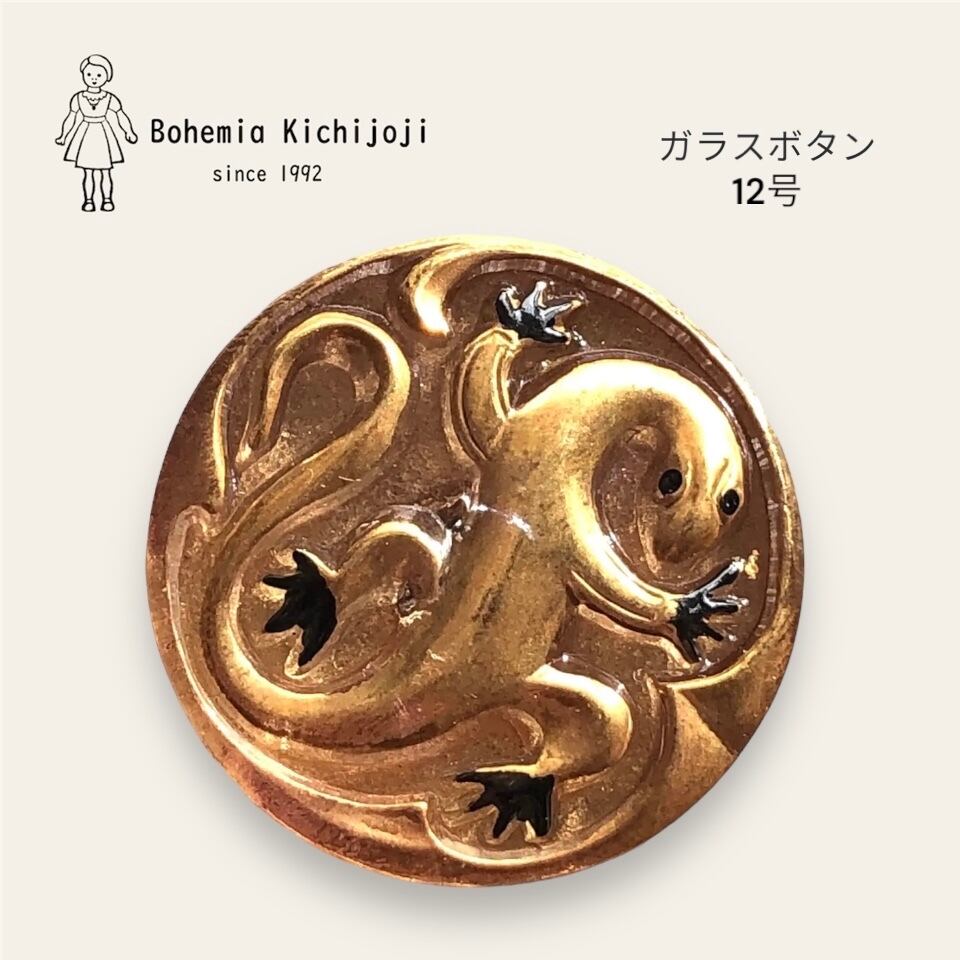 【チェコ ガラスボタン】サラマンダー(ゴールド ブラック)12号
