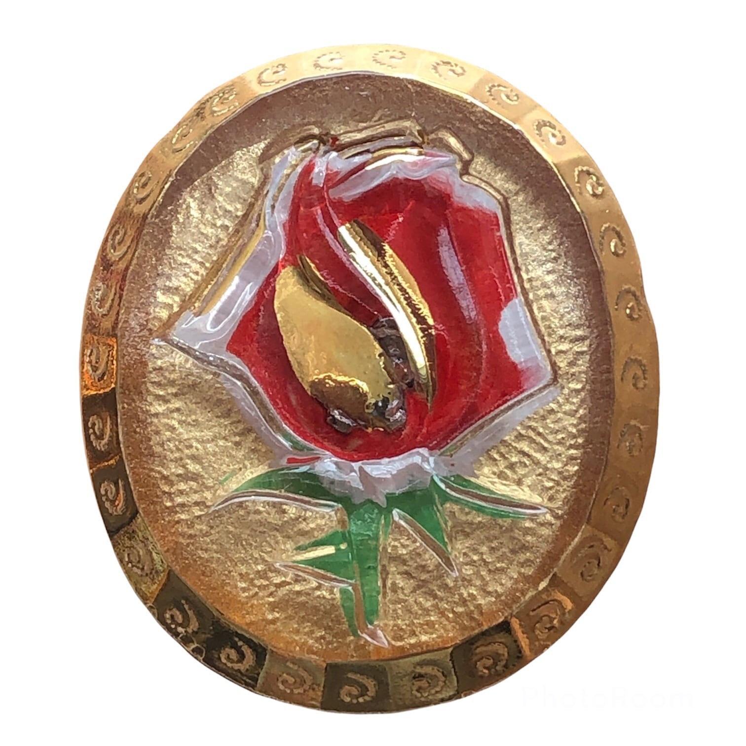 【チェコ ガラスボタン】ローズオーバル(レッド ゴールド)