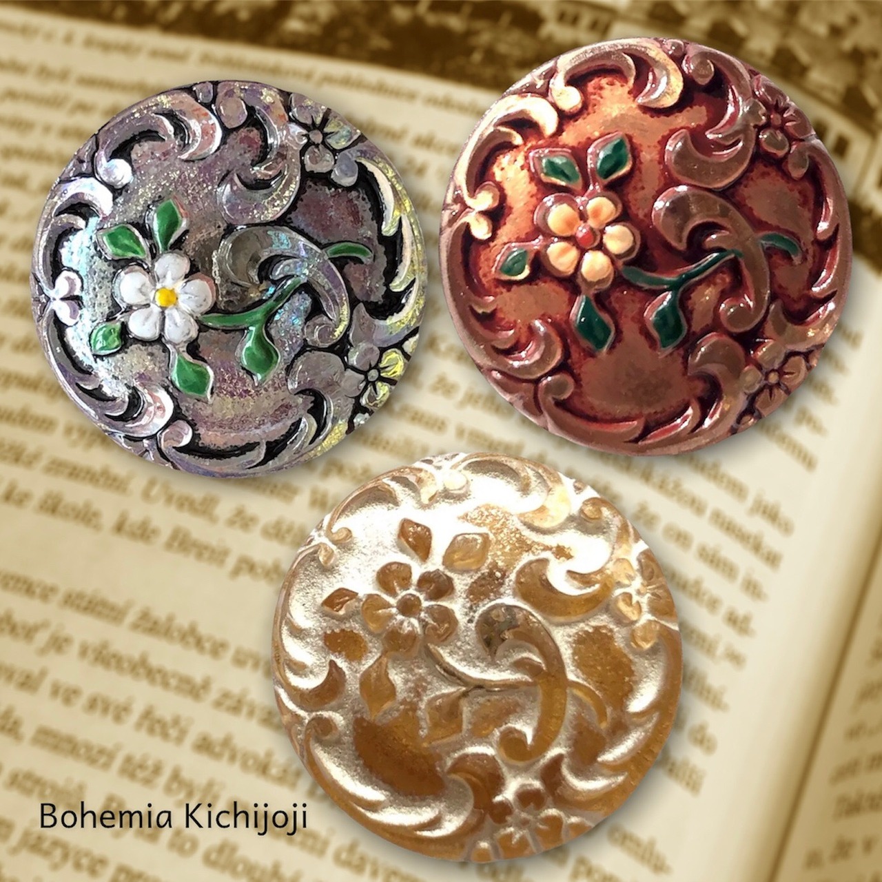 ★チェコ・北ボヘミア地方の村、ヤブロネツ・ナド・ニソウにある工房で作られたガラスボタン。すべて職人によるハンドメイドで、1つ1つ丁寧に作られています。