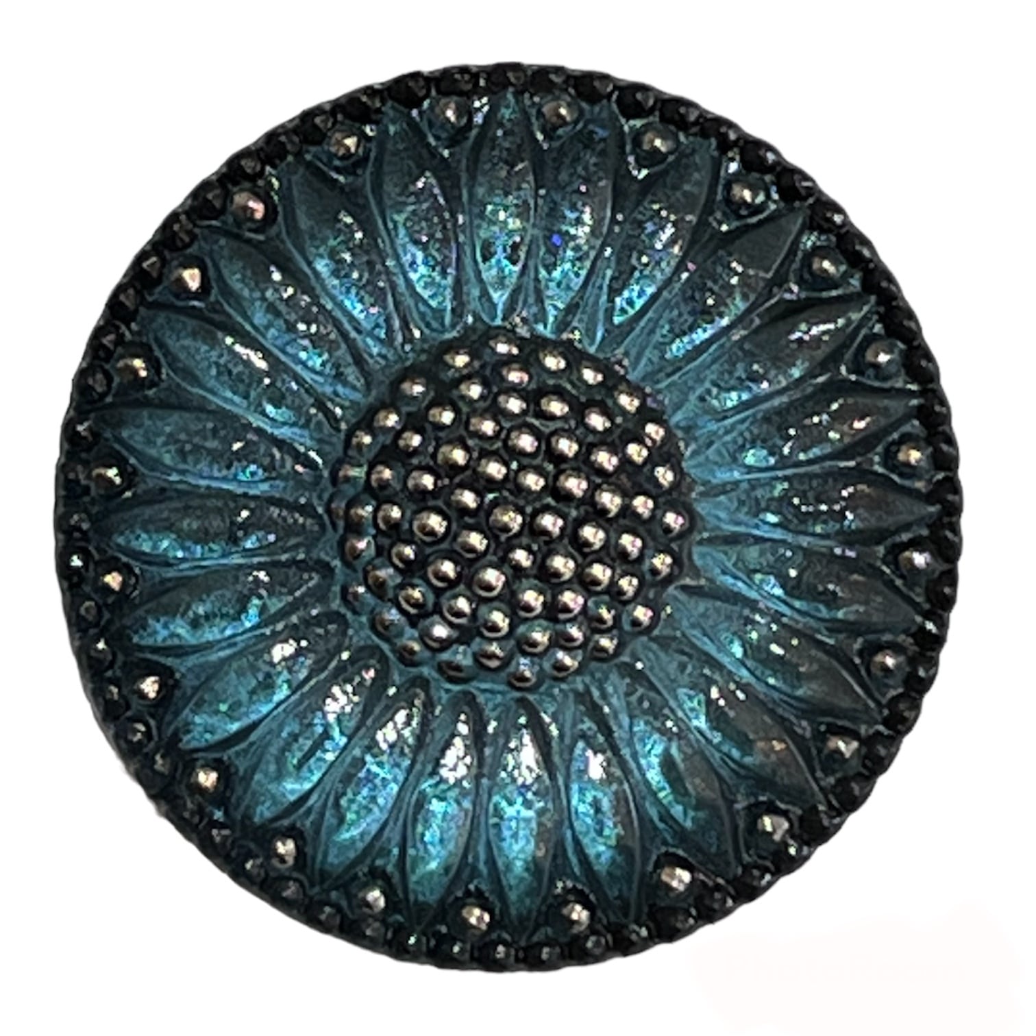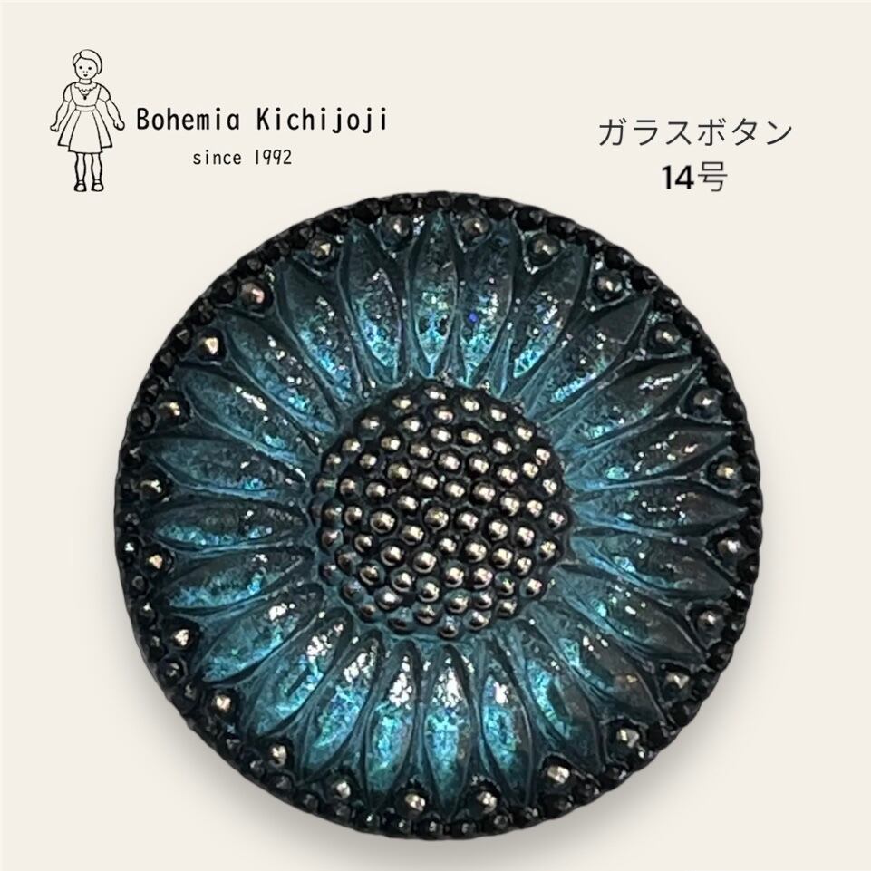 【チェコ ガラスボタン】ひまわり(ブルーグレー)14号