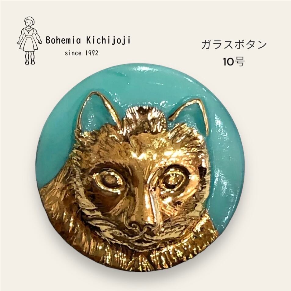 チェコガラスボタン(ネコ ターコイズ ゴールド)1個