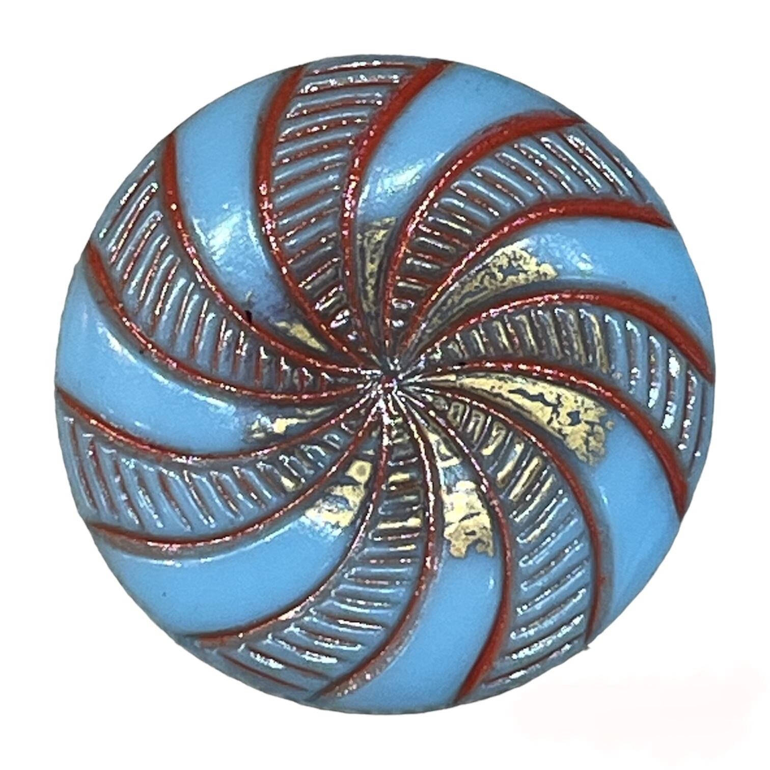 【チェコ ガラスボタン】スクリュー(ライトブルー オレンジ)12号