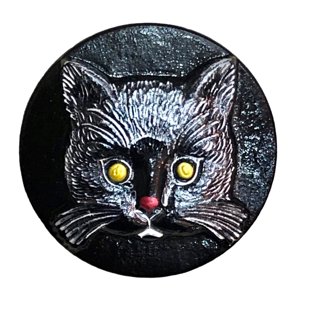 【チェコ ガラスボタン】ネコ(ブラック/イエローアイ)12号
