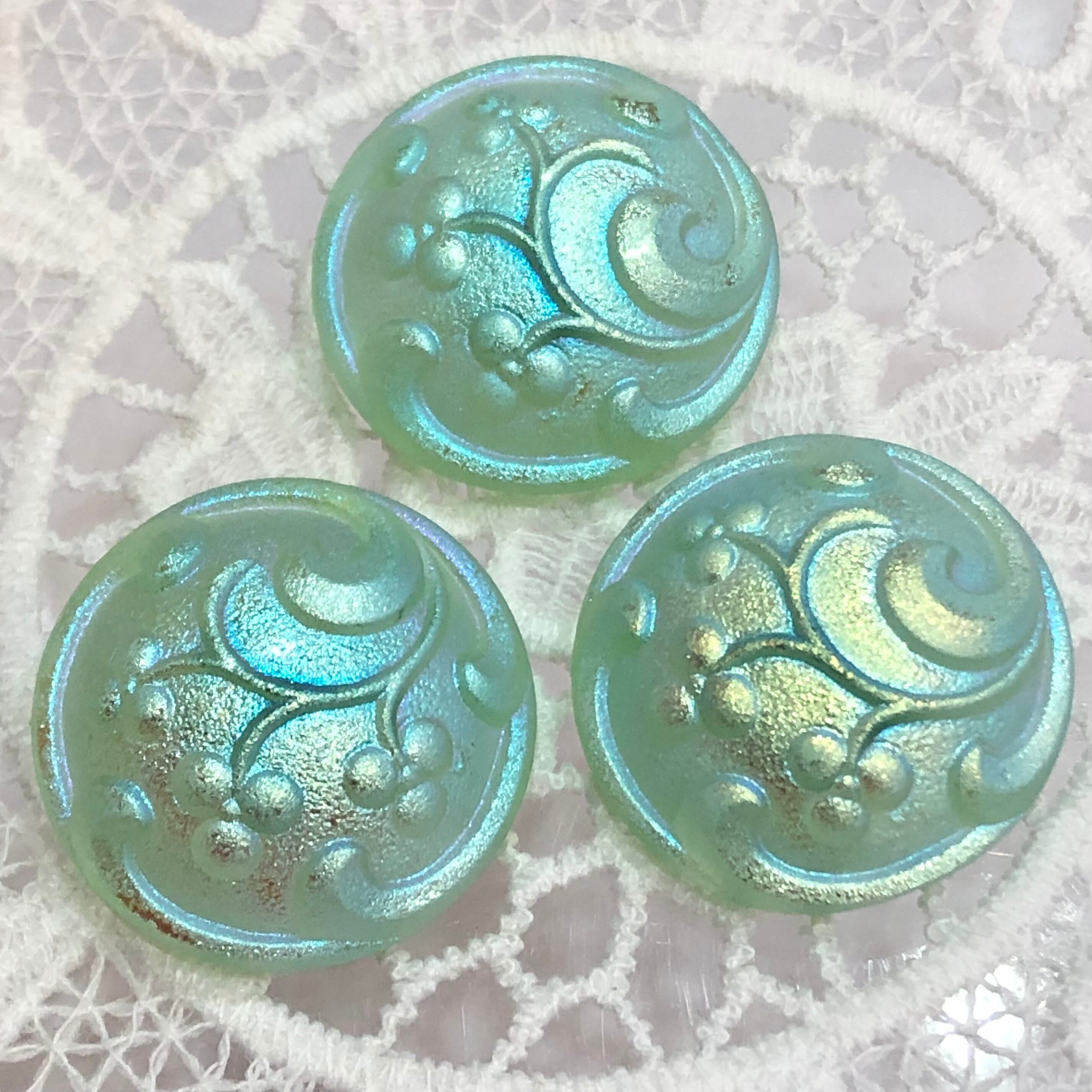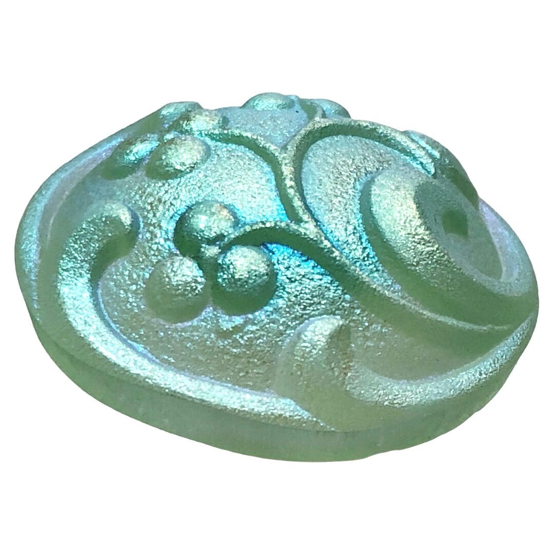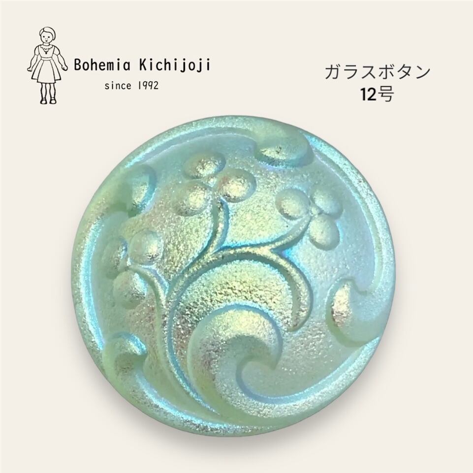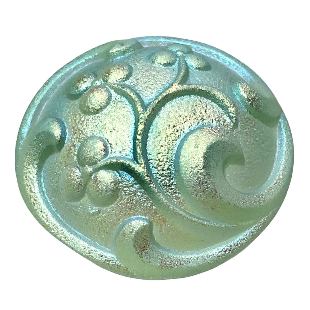 【チェコ ガラスボタン】つぼみ(ウラングリーン オーロラL)12号
