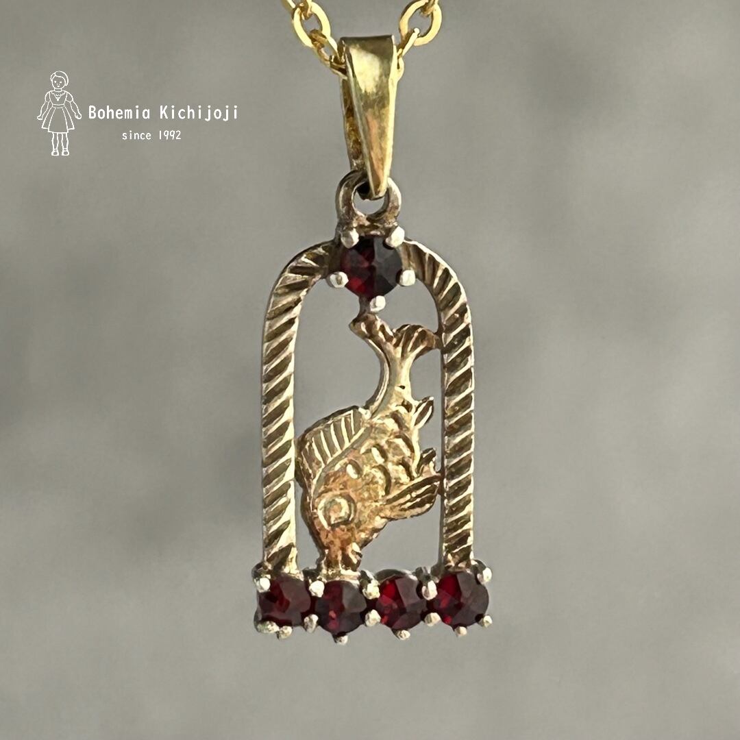 魚座(2月19日~3月20日)のペンダントトップ。丁寧に作られたモチーフに5粒のガーネットが輝きます。