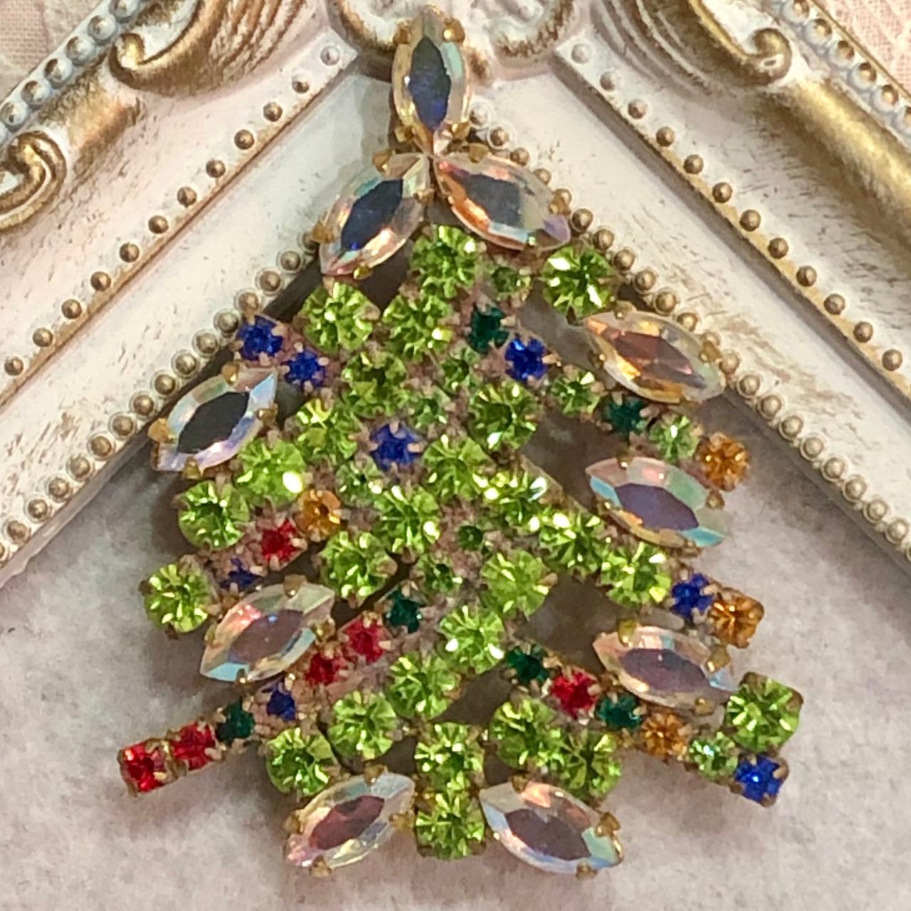 【ヴィンテージガラスアクセサリー】ブローチ (クリスマス もみの木B オーロラ)