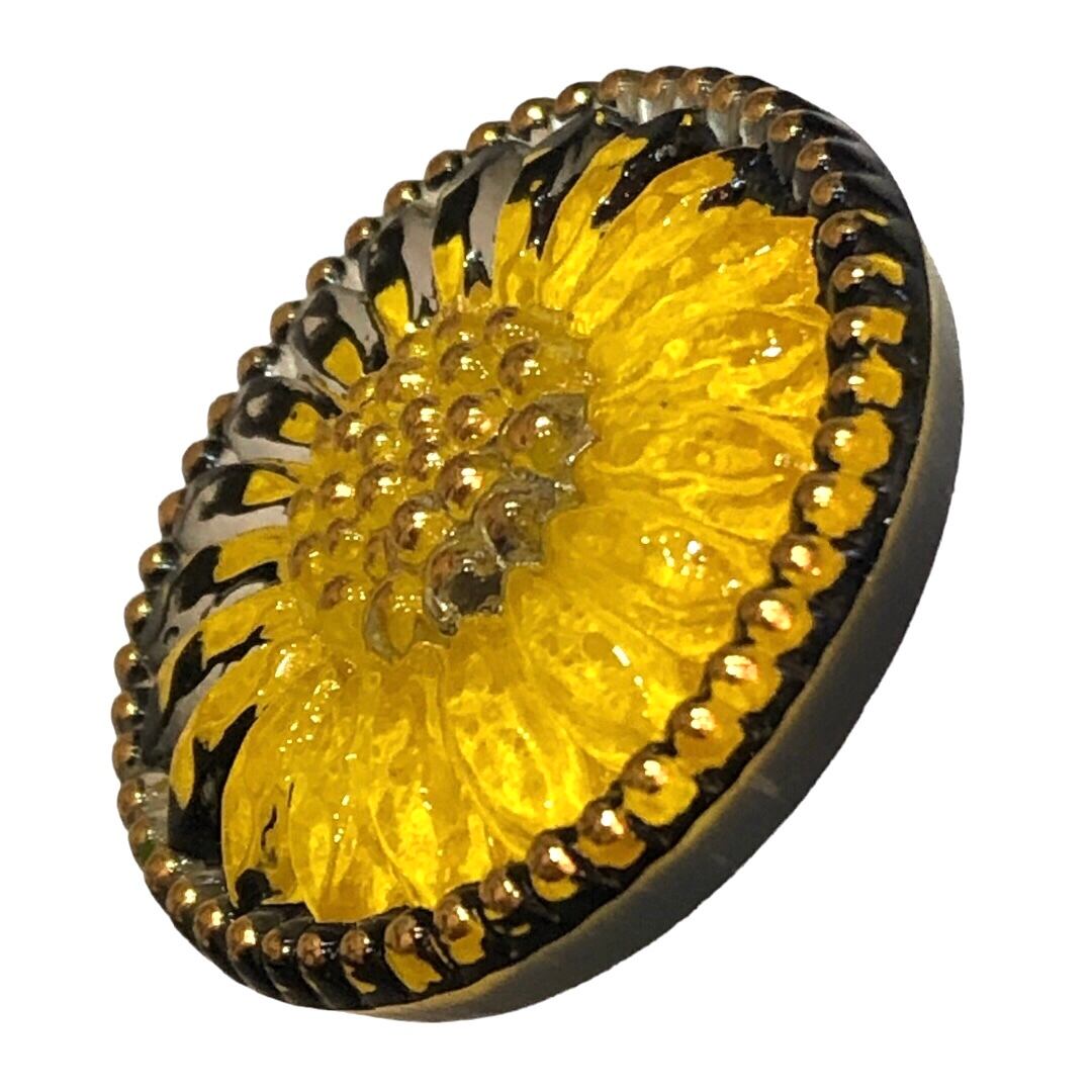 【チェコ ガラスボタン】ひまわりS(イエロー)10号