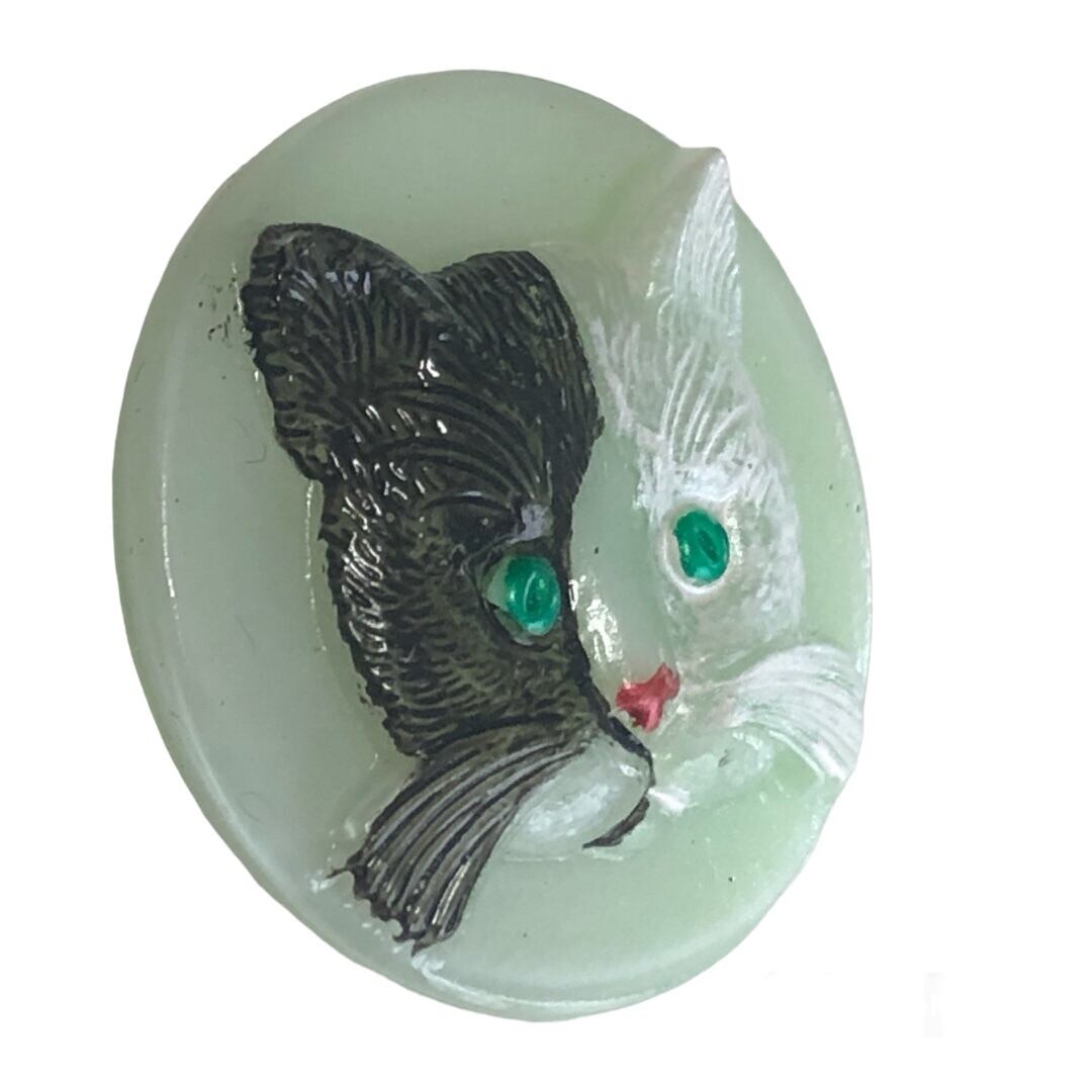 【チェコ ガラスボタン】ネコ (ウラン ライトグリーン ハーフブラック グリーンアイ)12号