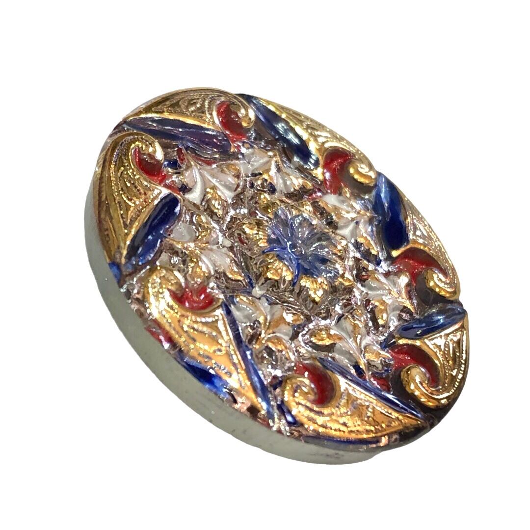 【チェコ ガラスボタン】フラワーブーケ(ゴールド ブルー レッド)12号