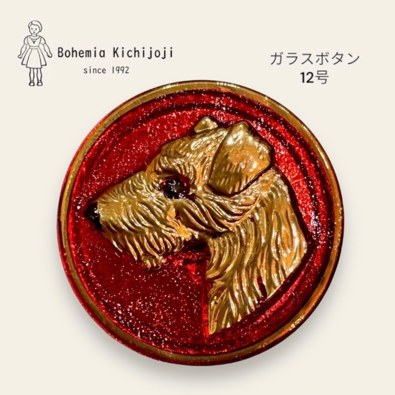 【チェコ ガラスボタン】テリア犬(ゴールド レッド)12号